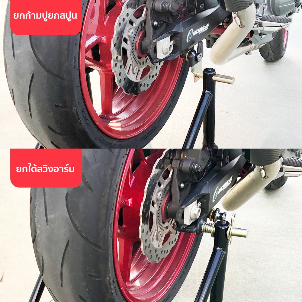 The Rider สแตน สแตนเซอร์วิส (มีหูหิ้วและสปริง) สแตนตั้งรถ มอเตอร์ไซค์ 300-1000cc มีล้อ มี หัว 2 แบบกรด A มี 4 สี