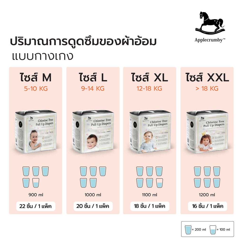 Applecrumby Chlorine Free ผ้าอ้อมแบบกางเกง ไซส์ XXL (16ชิ้น)