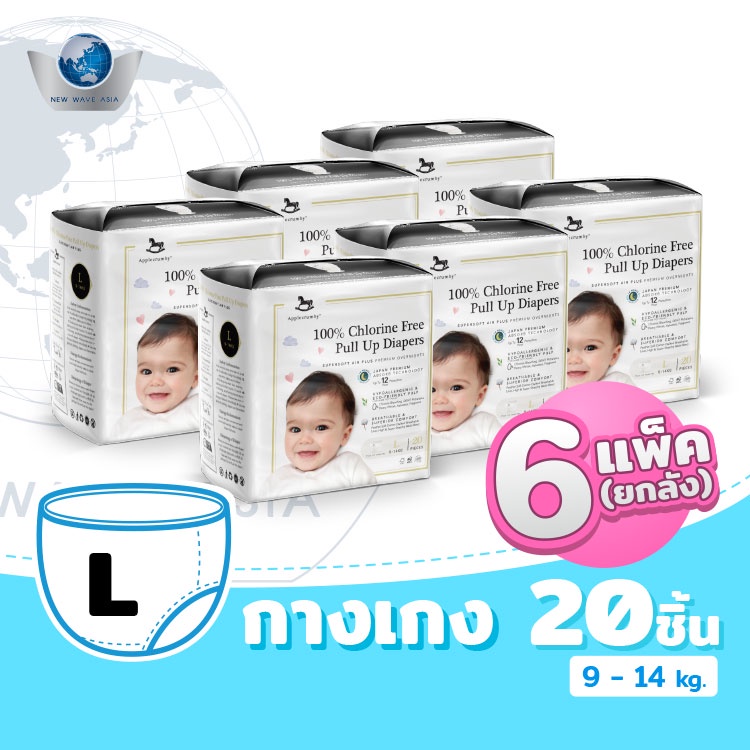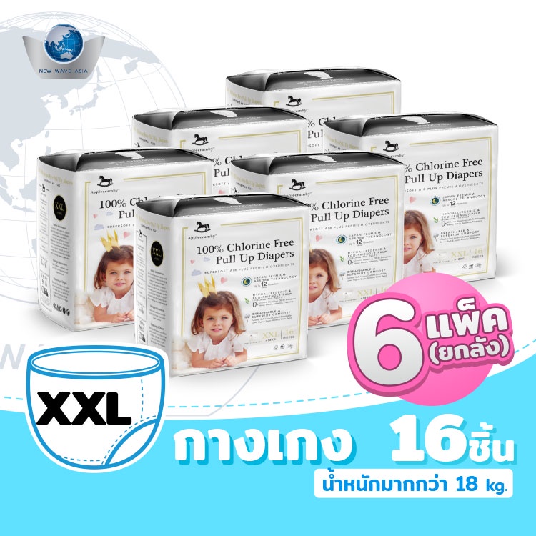 Applecrumby Chlorine Free ผ้าอ้อมแบบกางเกง ไซส์ M, L, XL, XXL ( ยกลัง 6 แพ็ค )