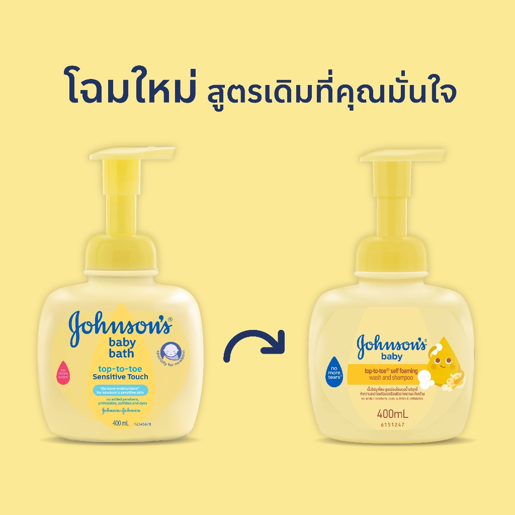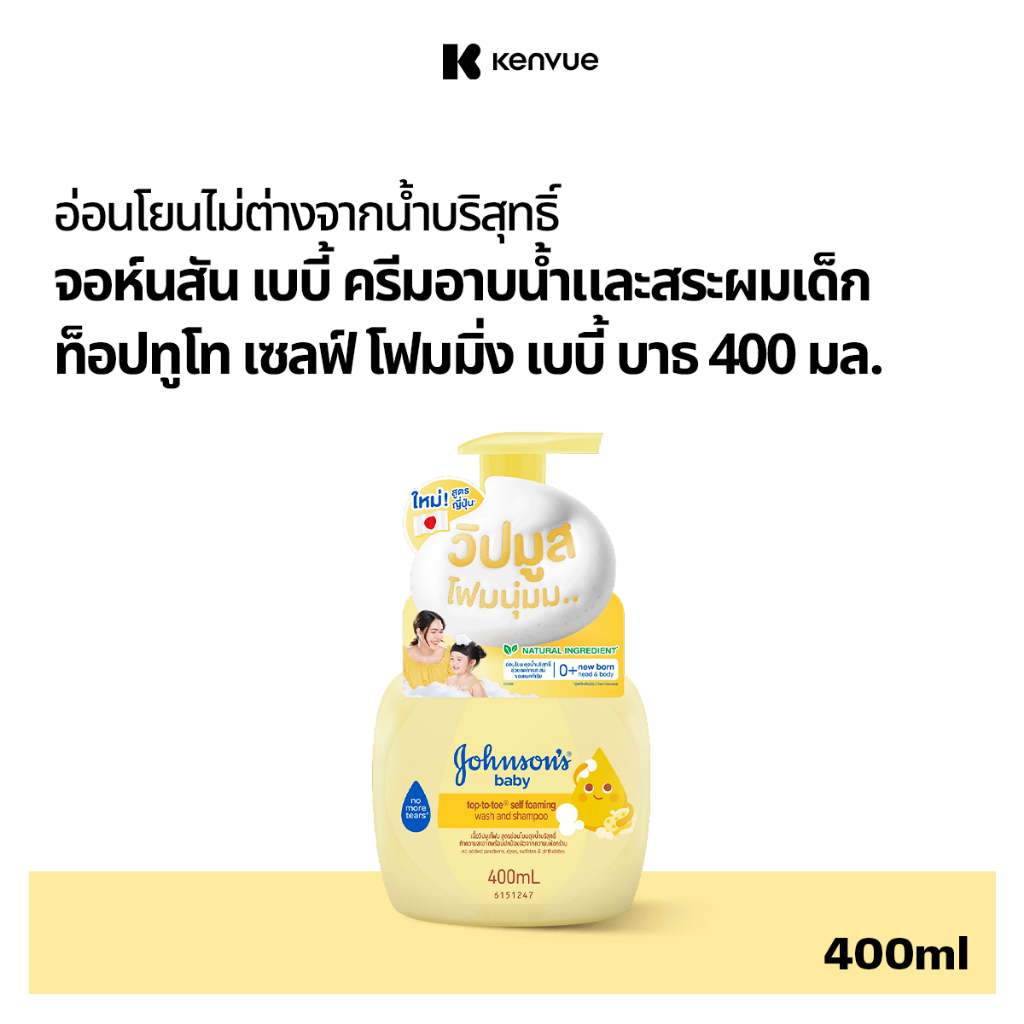 Johnson's Baby Wash&Shampoo Top to Toe Self Foaming Baby Bath400ml จอห์นสัน เบบี้ ครีมอาบน้ำและสระผมเด็กTTT 400ml