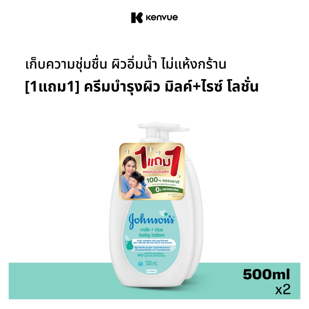 [1แถม1] จอห์นสัน ครีมบำรุงผิวโลชั่นเด็ ก มิลค์ไรซ์ โลชั่น 500มล 1+1