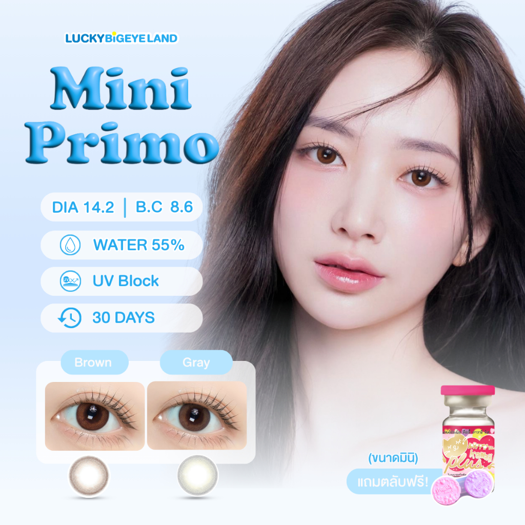 คอนแทคเลนส์ Mini Primo Gray / Brown (Kitty Kawaii) ขนาดมินิ 🌷 เนียน ธรรมชาติ ขายดีมาก