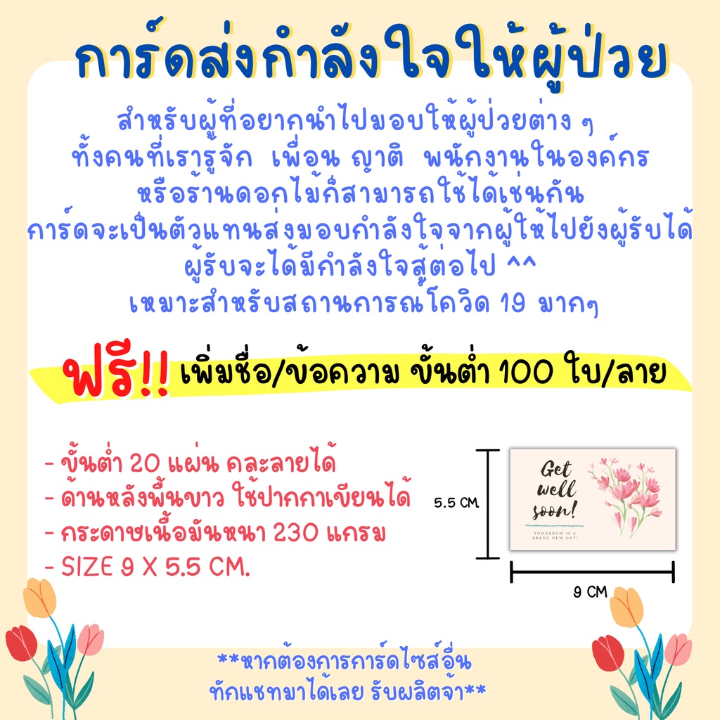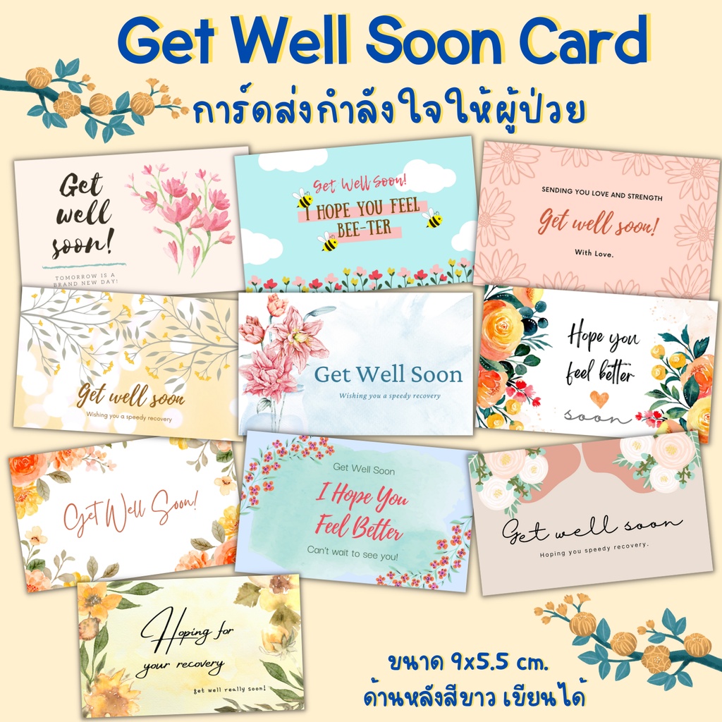 (10ใบ) Get well Soon Card ฟรี❗️เพิ่มชื่อข้อความ การ์ดอวยพรผู้ป่วย การ์ดให้กำลังใจ โควิด