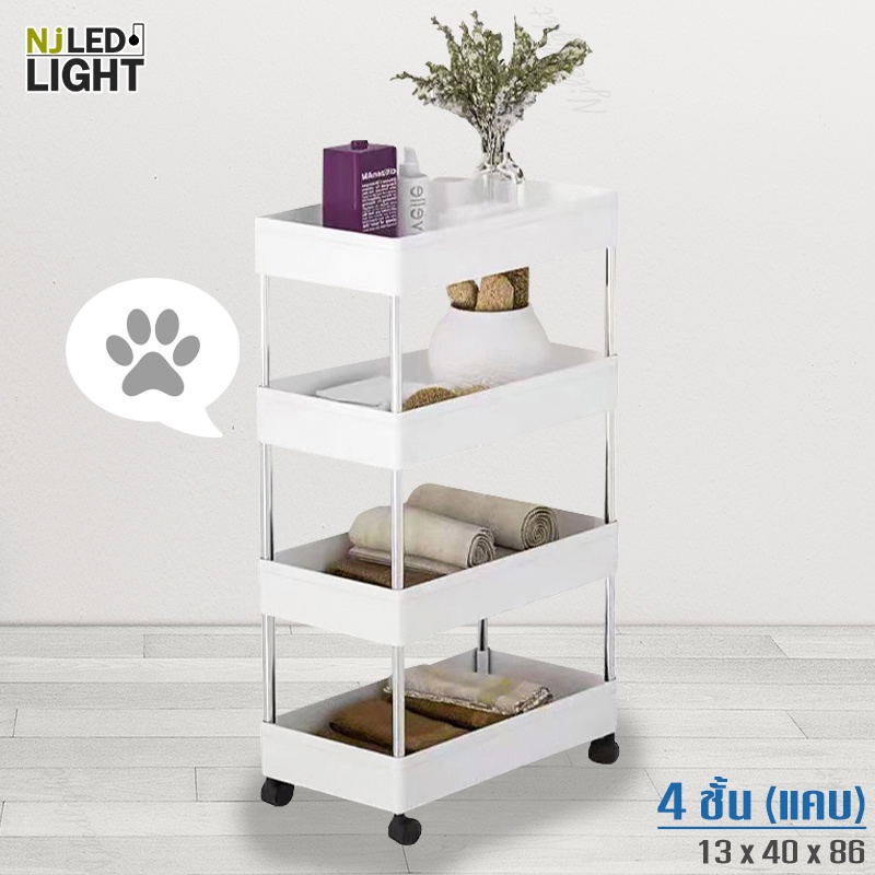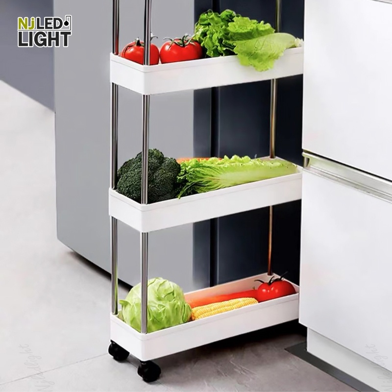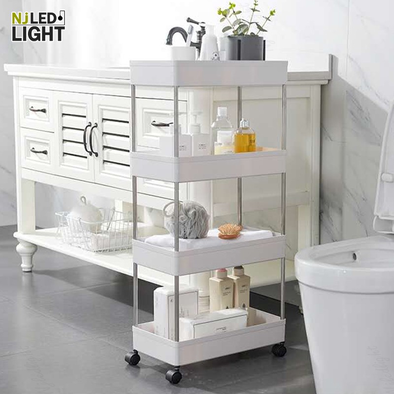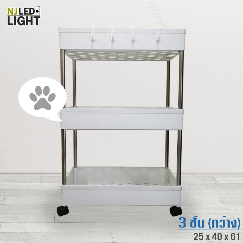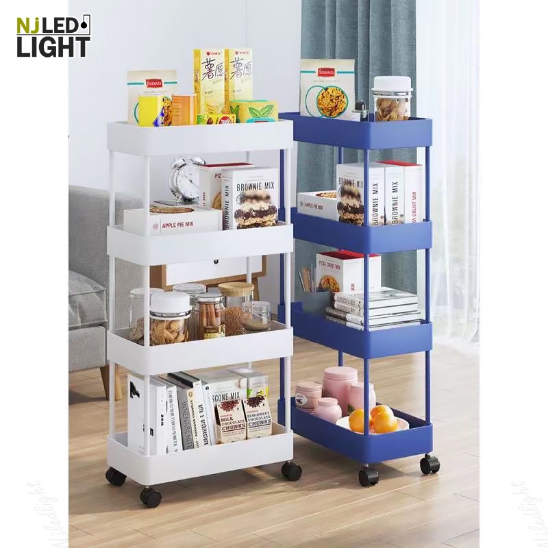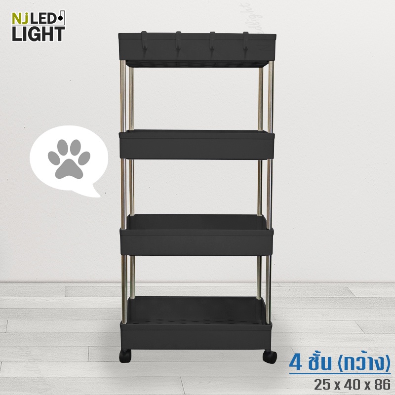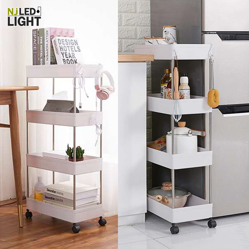 NJLED LIGHT I029 ชั้นวางของมีล้อ วางในที่แคบ พลาสติก วางของในห้องครัว ห้องน้ำ พร้อมตะขอ