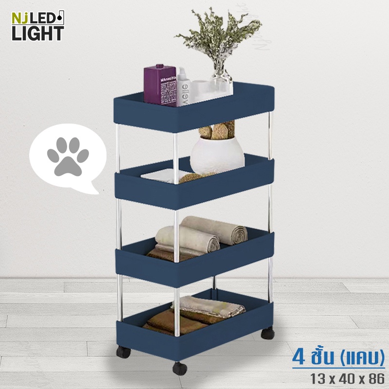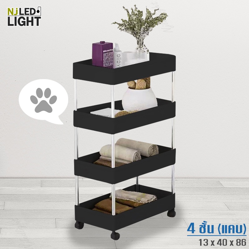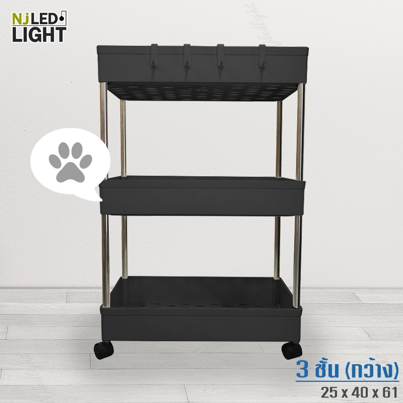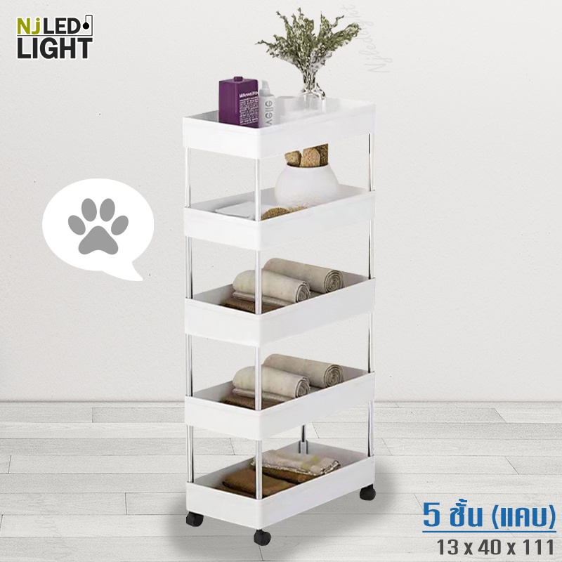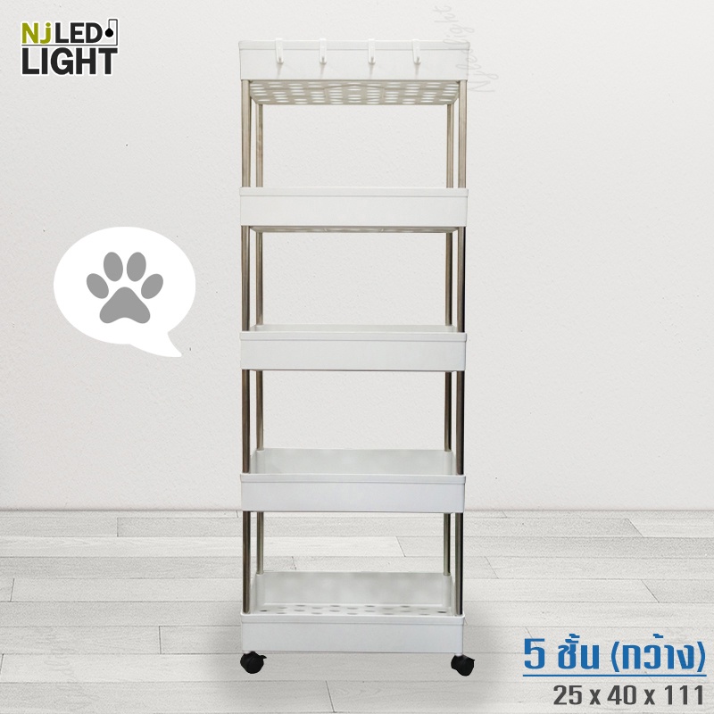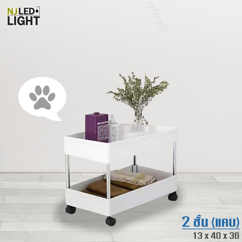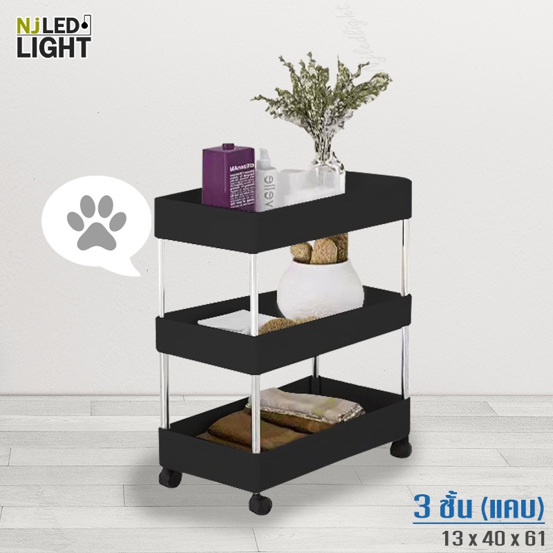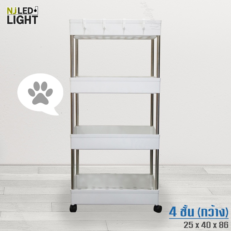 NJLED LIGHT I029 ชั้นวางของมีล้อ วางในที่แคบ พลาสติก วางของในห้องครัว ห้องน้ำ พร้อมตะขอ