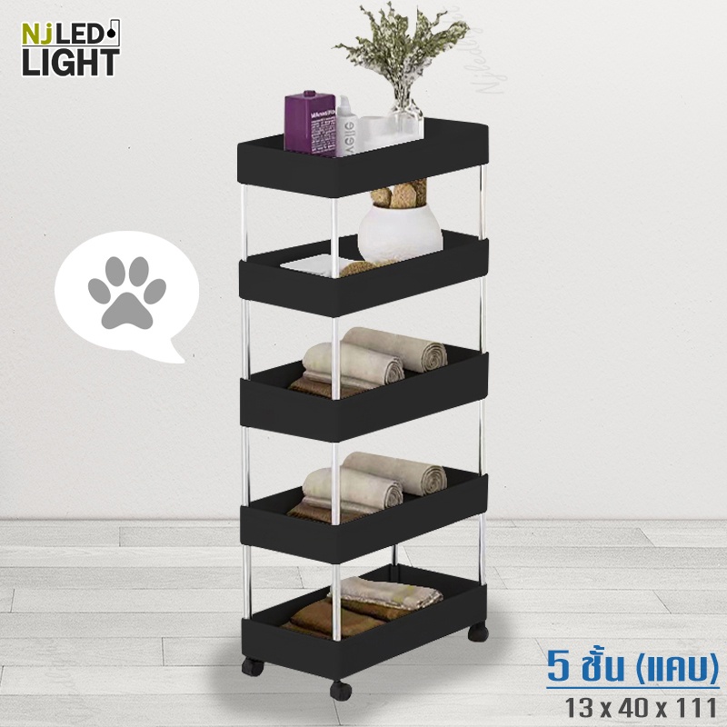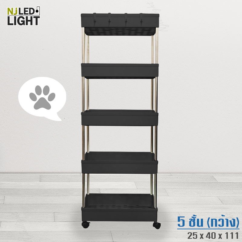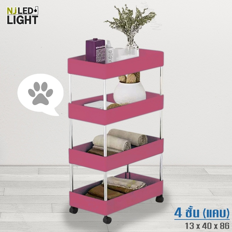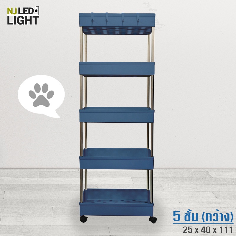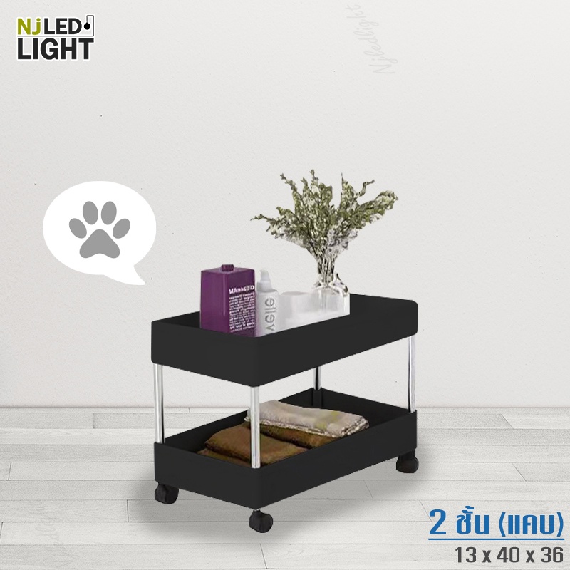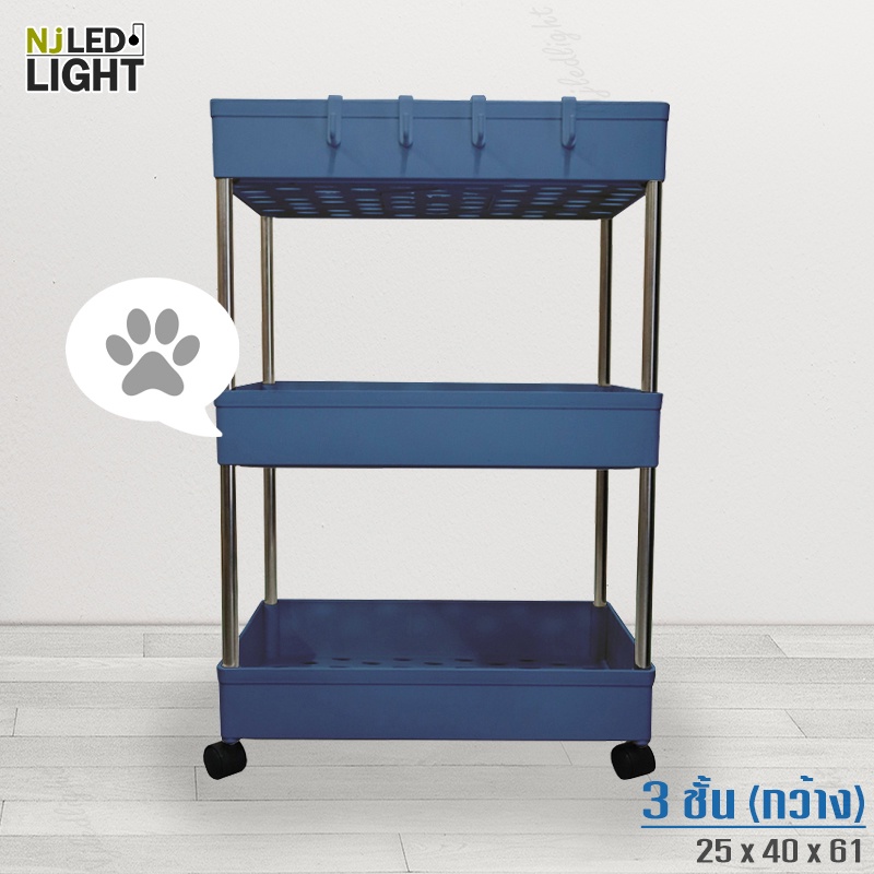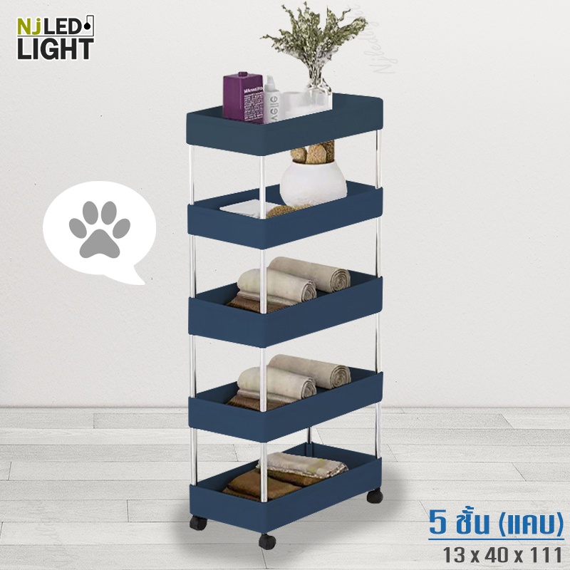 NJLED LIGHT I029 ชั้นวางของมีล้อ วางในที่แคบ พลาสติก วางของในห้องครัว ห้องน้ำ พร้อมตะขอ