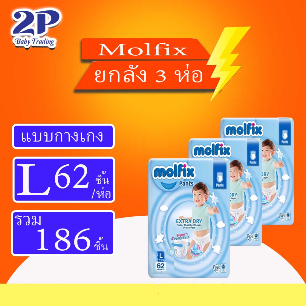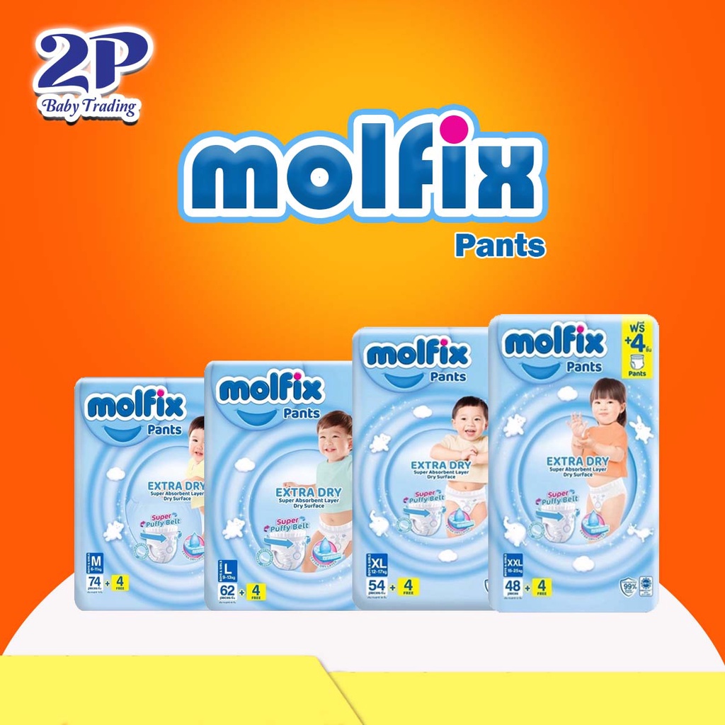 Molfix Pants Extra Dry ผ้าอ้อมเด็กแบบกางเกง ห่อใหญ่ยกลัง3แพ็ค ไซส์ M-XXL
