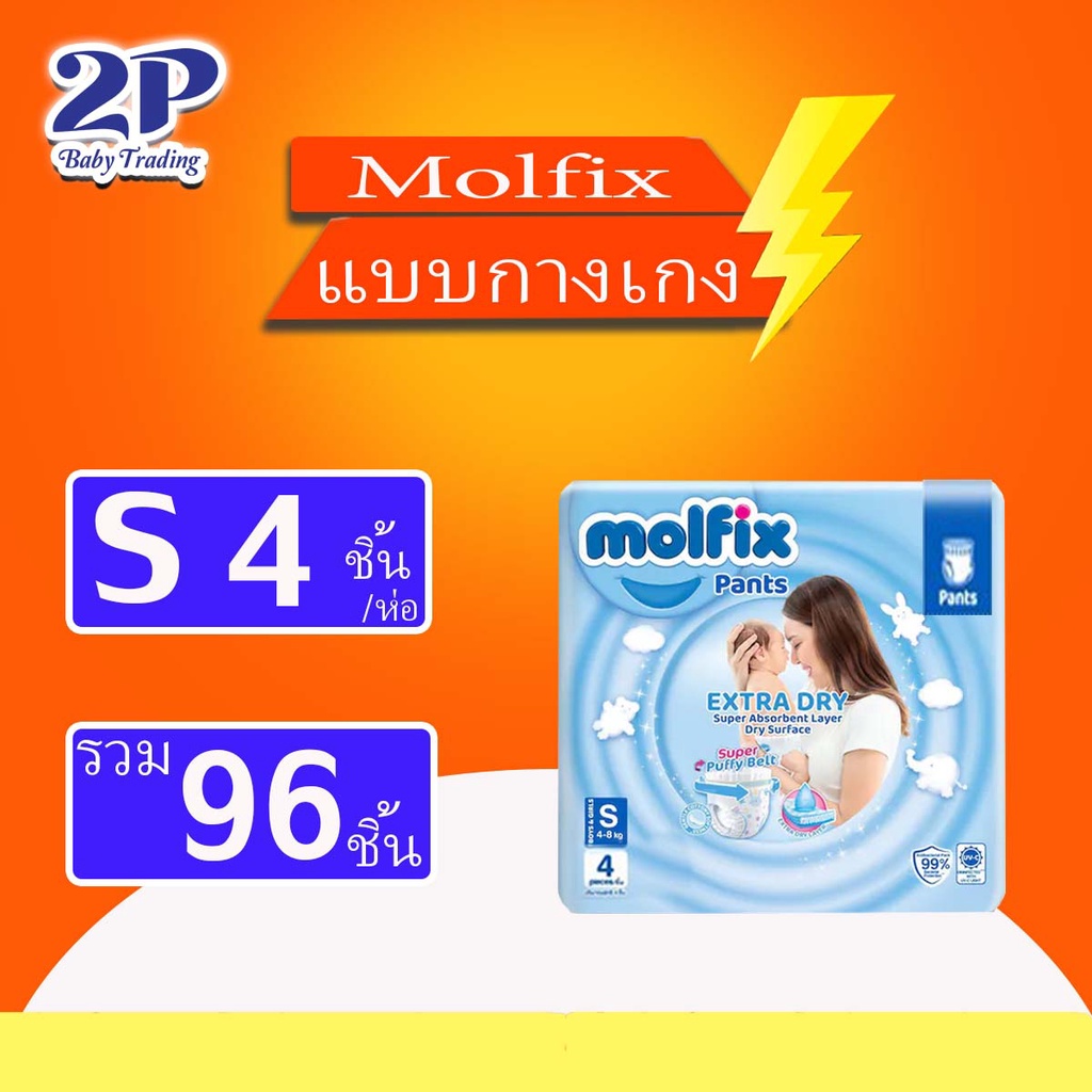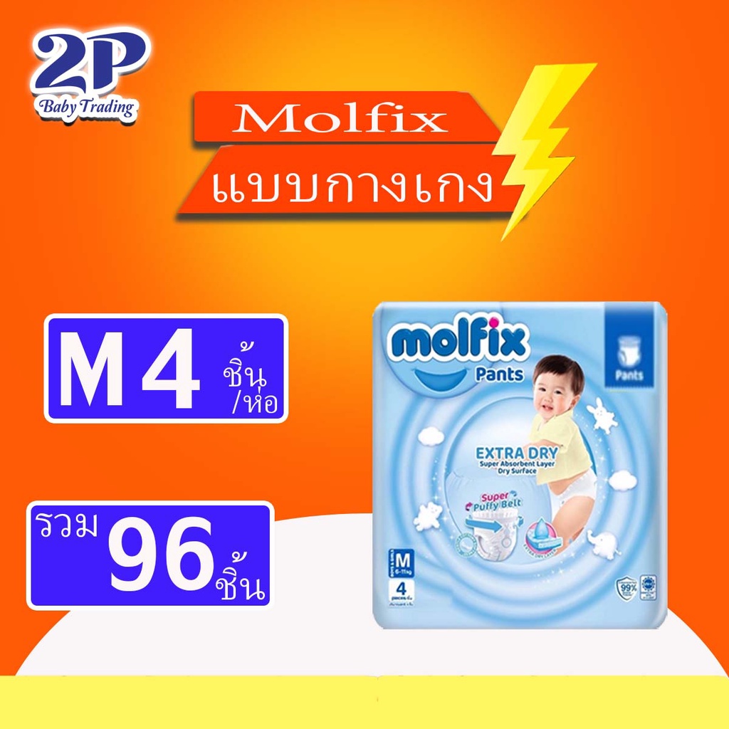 Molfix Extra Dry pants โมฟิก เอ็กซ์ตร้าดรายแพนท์ (ผ้าอ้อมแบบกางเกง) ยกลังเล็ก
