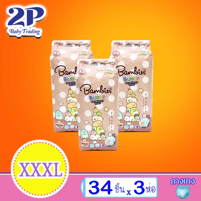รุ่นใหม่ ยกลัง Bambies Buddy Day&Night Pants แบมบี้ส์ บัดดี้ เดย์แอนด์ไนท์ ผ้าอ้อมแบบกางเกง
