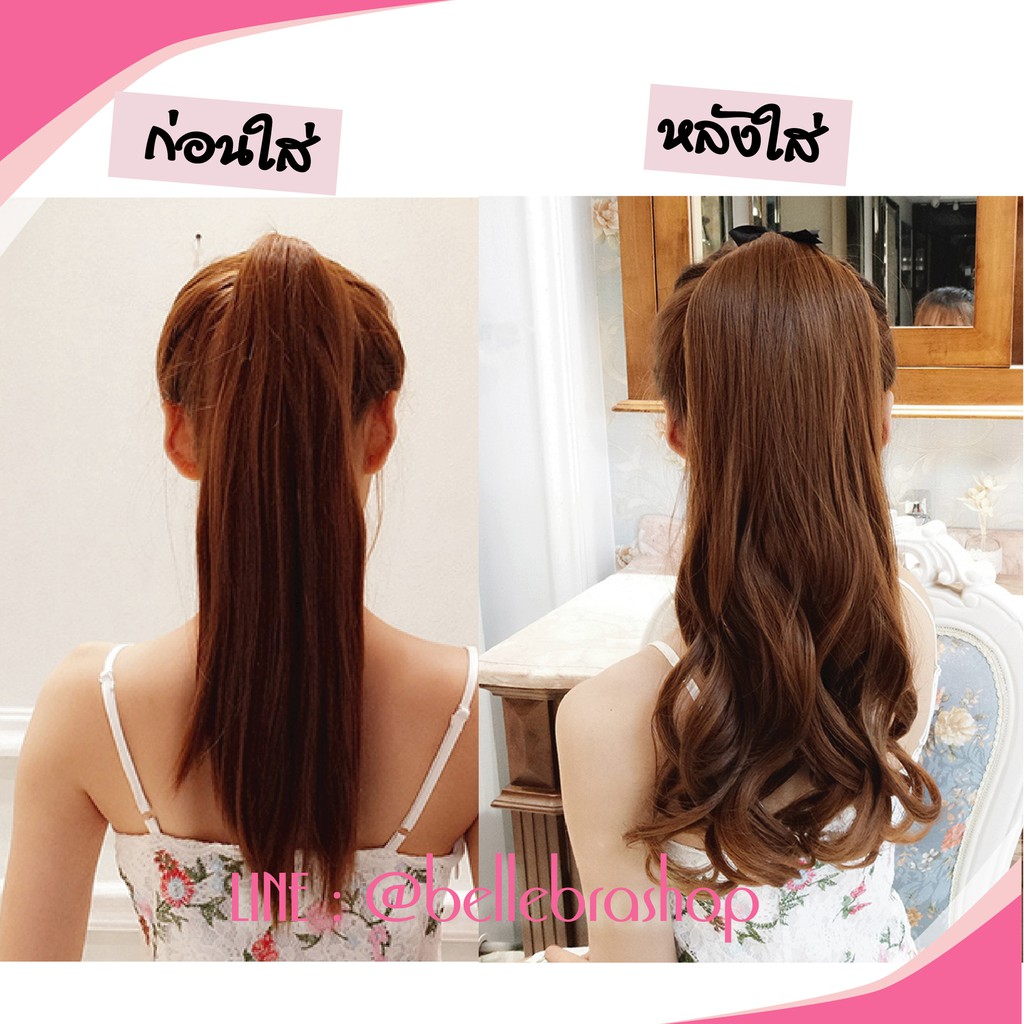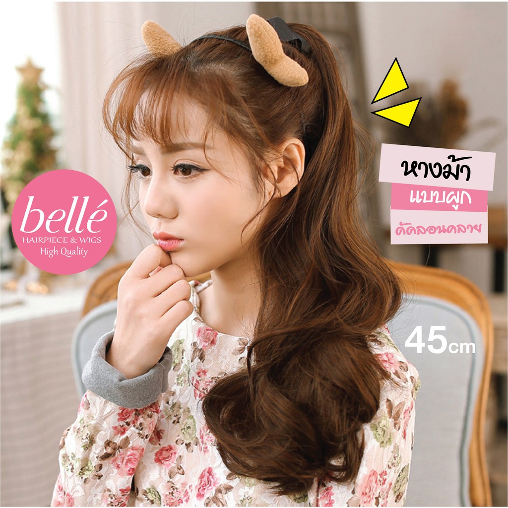 ลดล้างสต๊อก 🔥 BELLE แฮร์พีช หางม้า ลอนธรรมชาติ สไตล์เกาหลี แบบผูก 45cm (พร้อมส่ง)