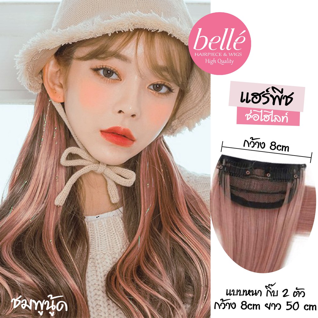 BELLE 💥 แฮร์พีช ช่อไฮไลท์ ไซส์ใหญ่ กิ๊บ 2 ตัว 50cm สวยปัง แบบ LISA Black Pink วิกผมไฮไลท์ ผมเปีย