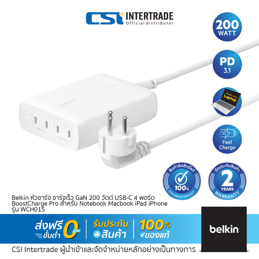 Belkin หัวชาร์จ ชาร์จเร็ว GaN 200 วัตต์ USB-C 4 พอร์ต BoostCharge Pro สำหรับ Notebook Macbook iPad iPhone รุ่น WCH015