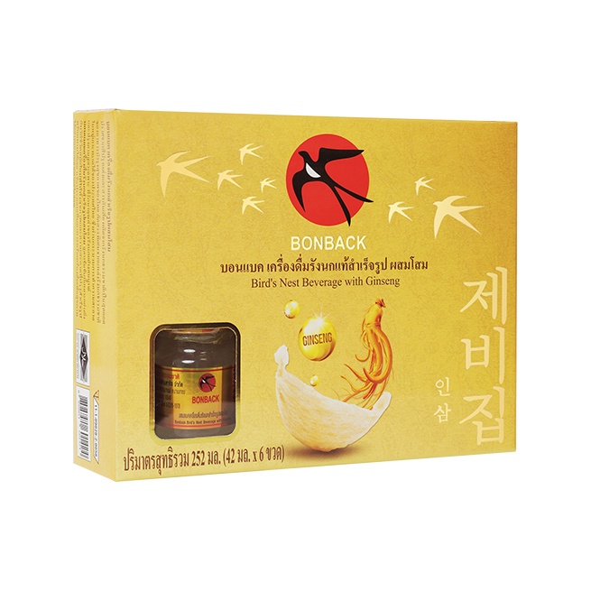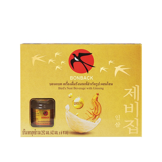 🎁lสินค้าขายดี📌 Bonback เครื่องดื่มรังนกสำเร็จรูปผสมโสม ปริมาณ 42 มล. 3 กล่องแถม 4 กล่อง