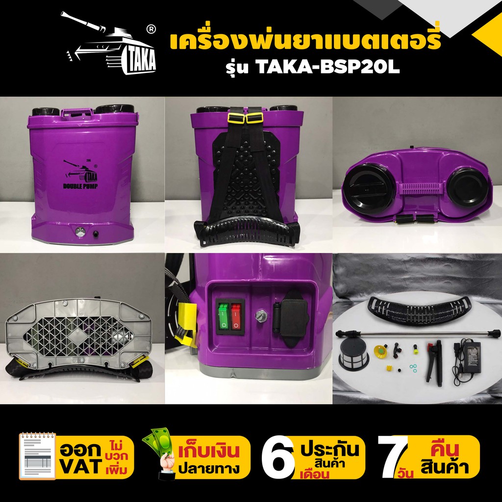 ถังฉีดพ ่นยา ปั๊มคู่ แรงคูณ2 พิเศษด้ามฉีดหัวทองเหลือง TAKA BSPD20L เครื่องพ่นยา แบตถังคู่ ถัง 20ลิตร