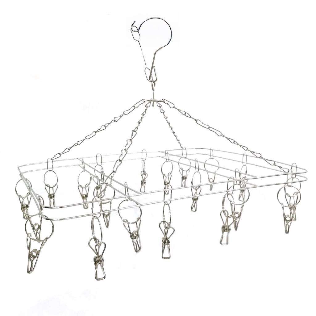 พร้อมส่ ง พวงหนีบผ้า พวงตากผ้า แบบกลม แบบเหลี่ยม ที่หนีบผ้าสแตนเลส ไม้แขวนหนีบ สแตนเลส 20 หนีบ มีตะขอล๊อค