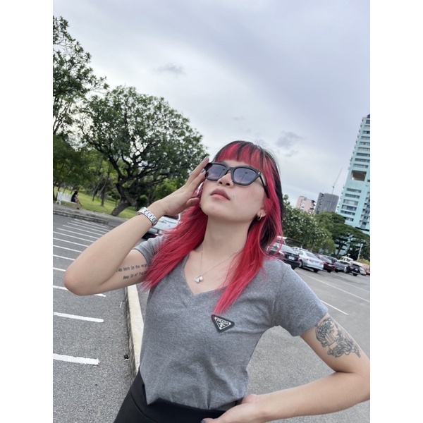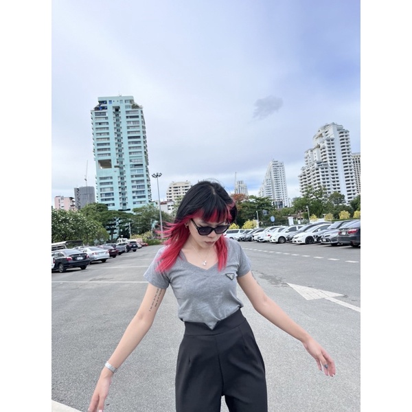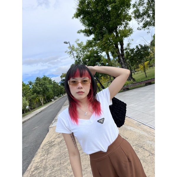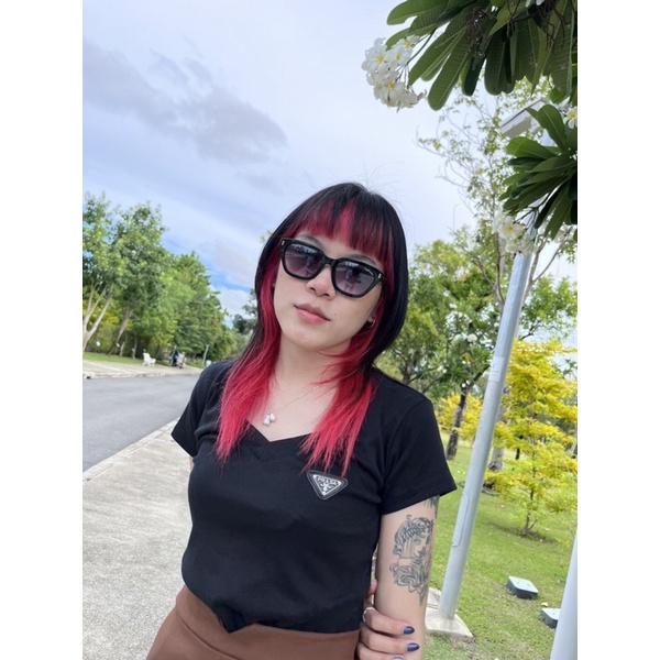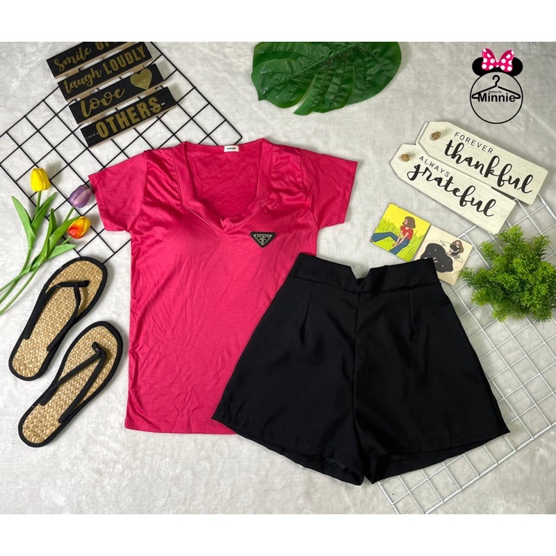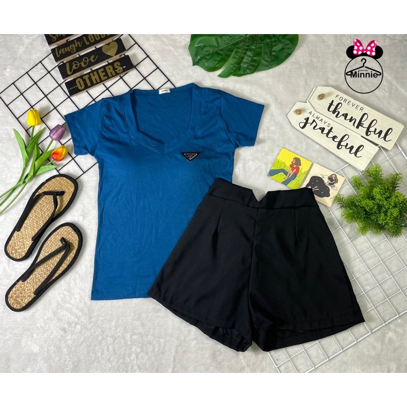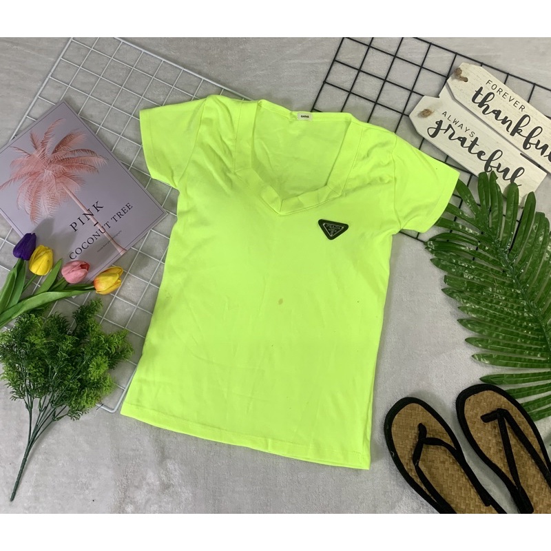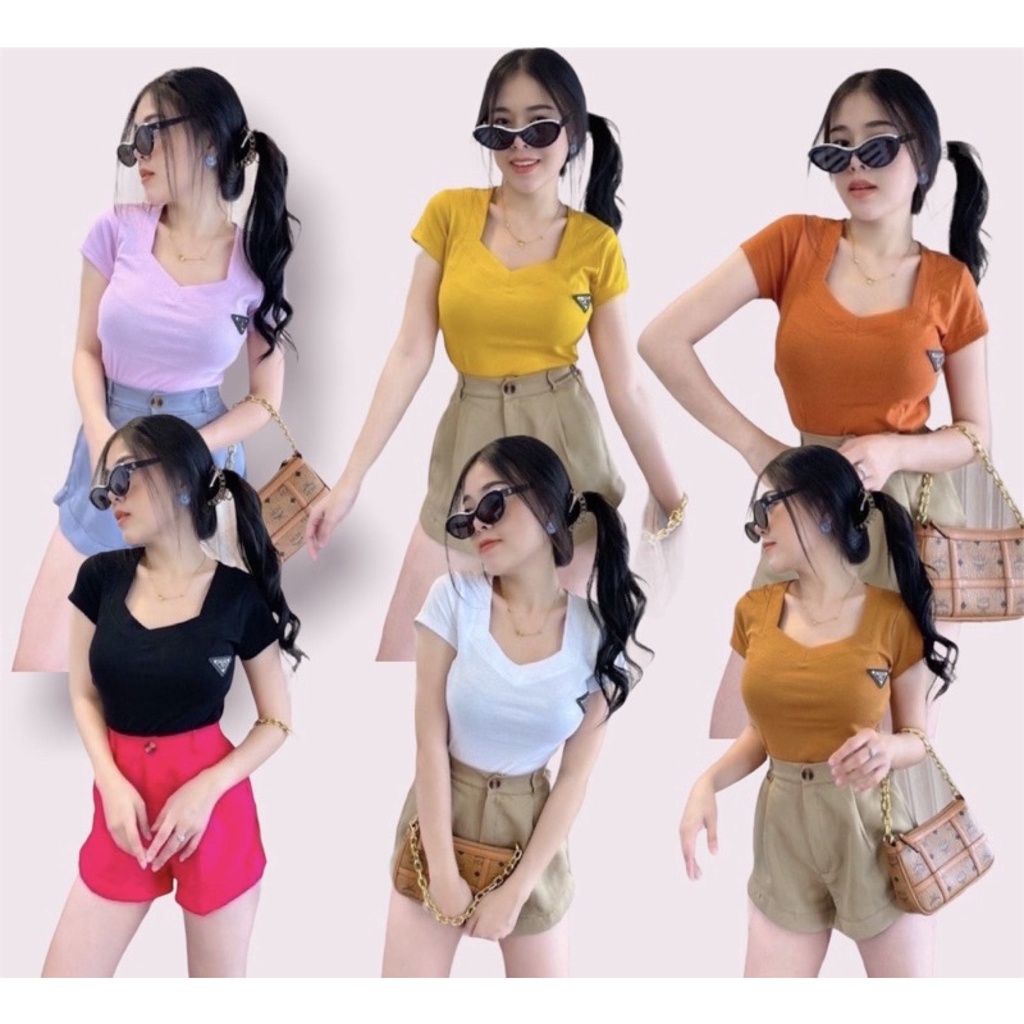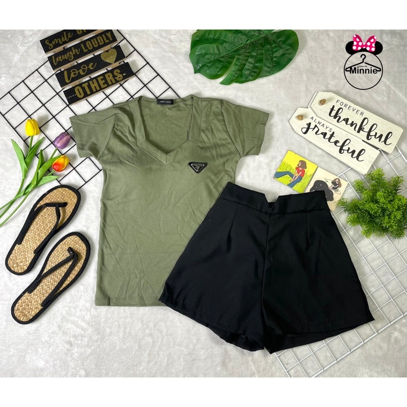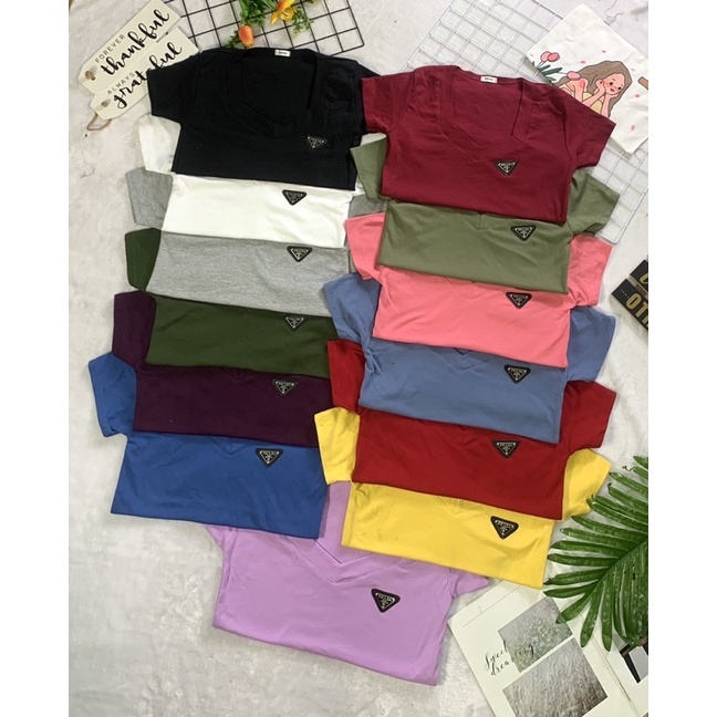 Lalata Vintage เสื้อแขนสั้นผู้หญิง เสื้อยืดแขนสั้น คอวีผ้านิ่ม แต่งป้าย ใส่แล้วทรงสวยสุดๆ