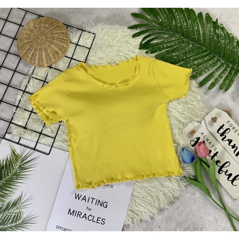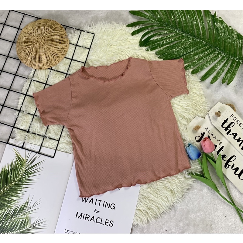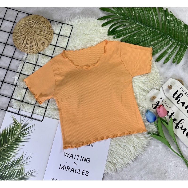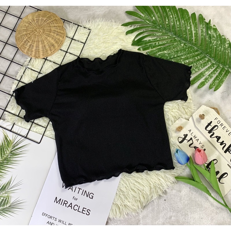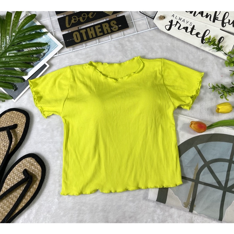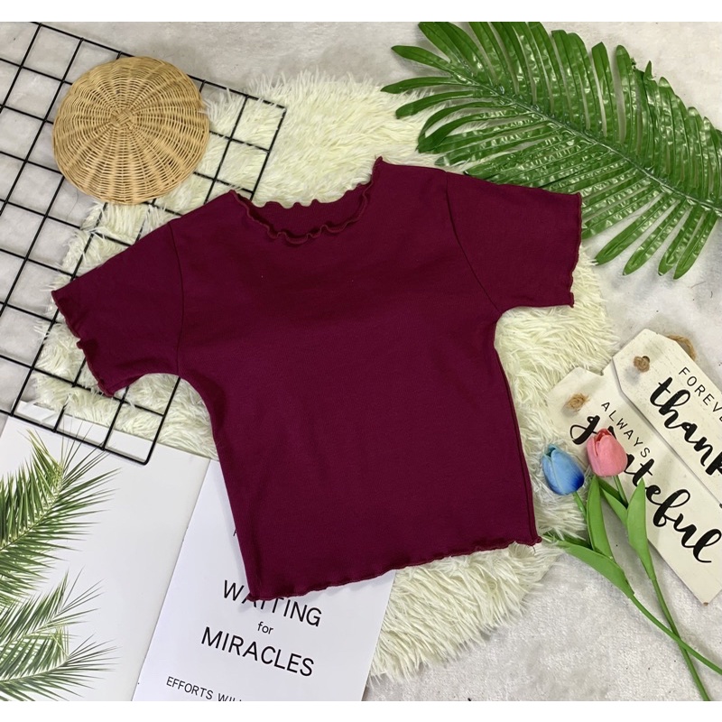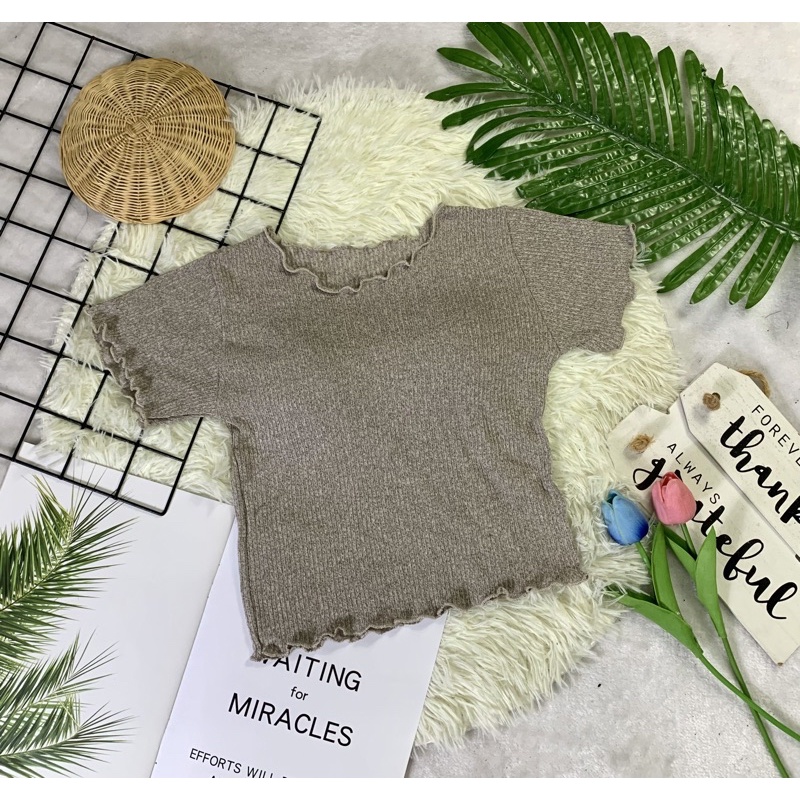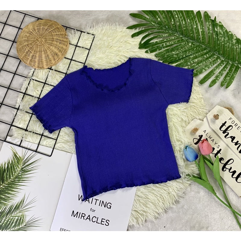 Lalata Vintage Crop Top ครอปหยัก เสื้อครอป ครอปผ้าร่อง ผ้ายืด คอกลม ชายมีระบาย (มี 19 สีให้เลือก)