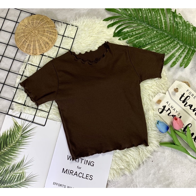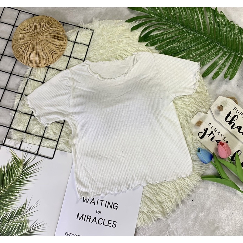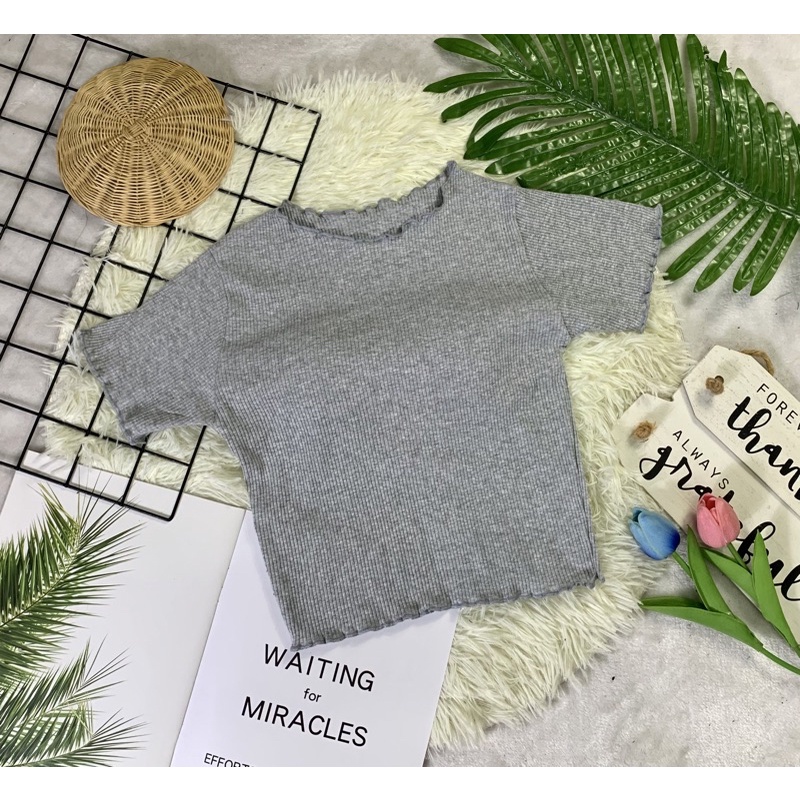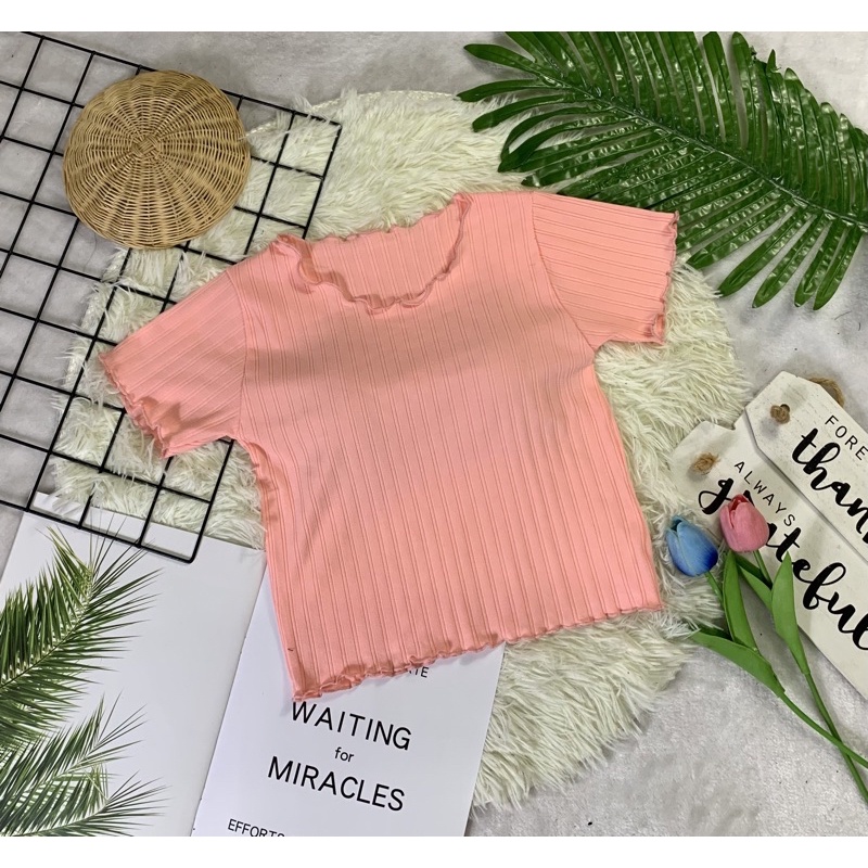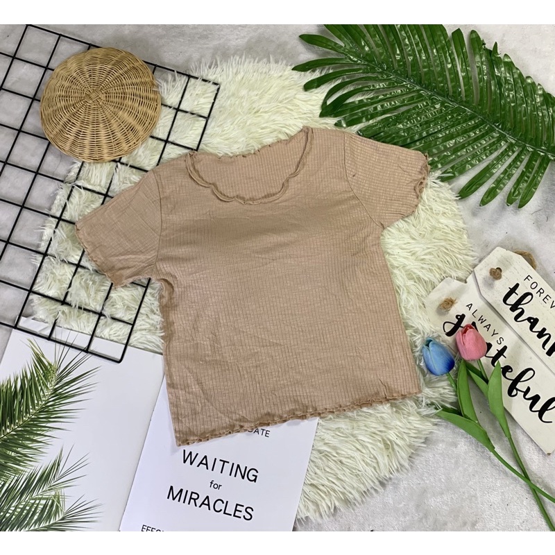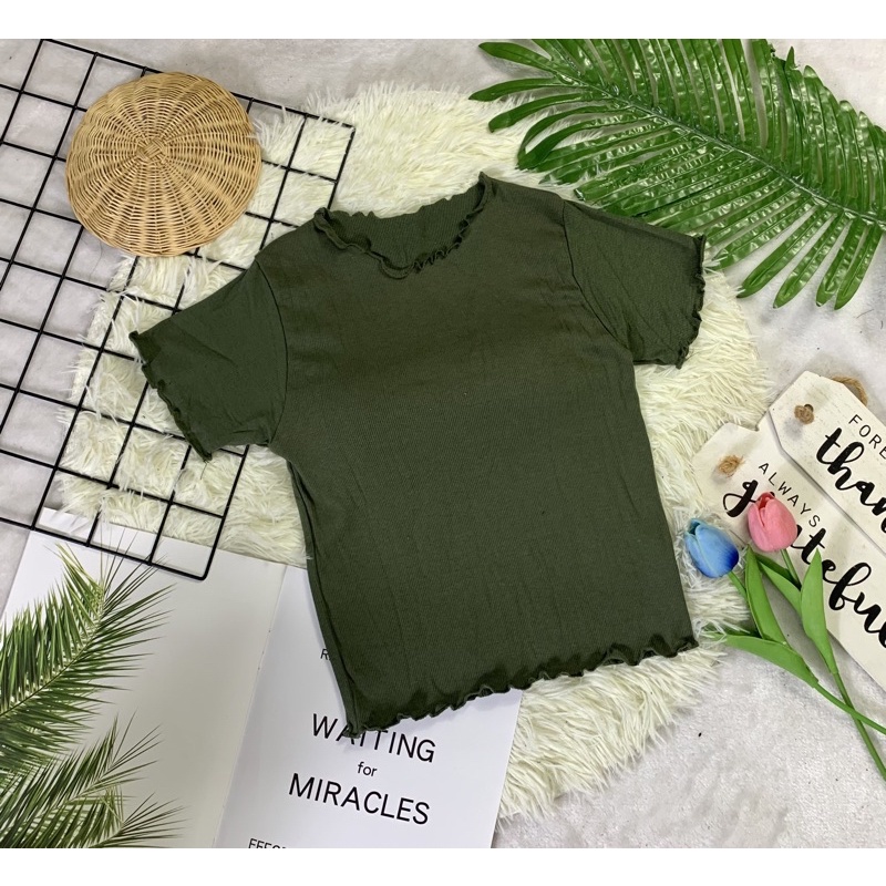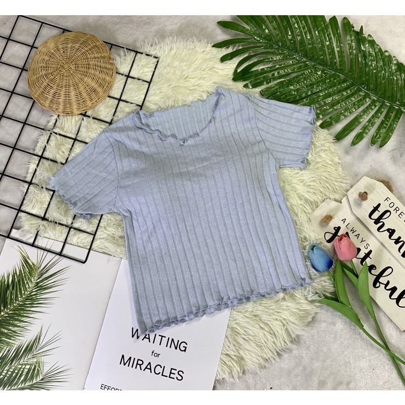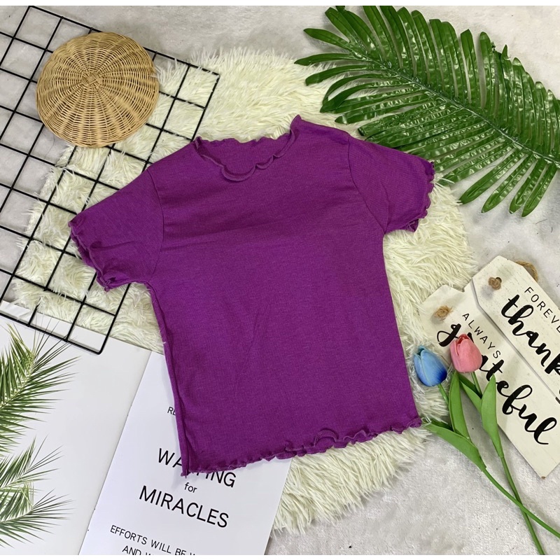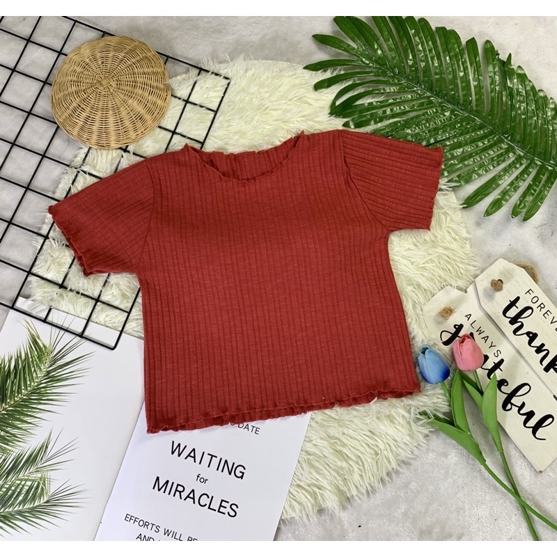 Lalata Vintage Crop Top ครอปหยัก เสื้อครอป ครอปผ้าร่อง ผ้ายืด คอกลม ชายมีระบาย (มี 19 สีให้เลือก)