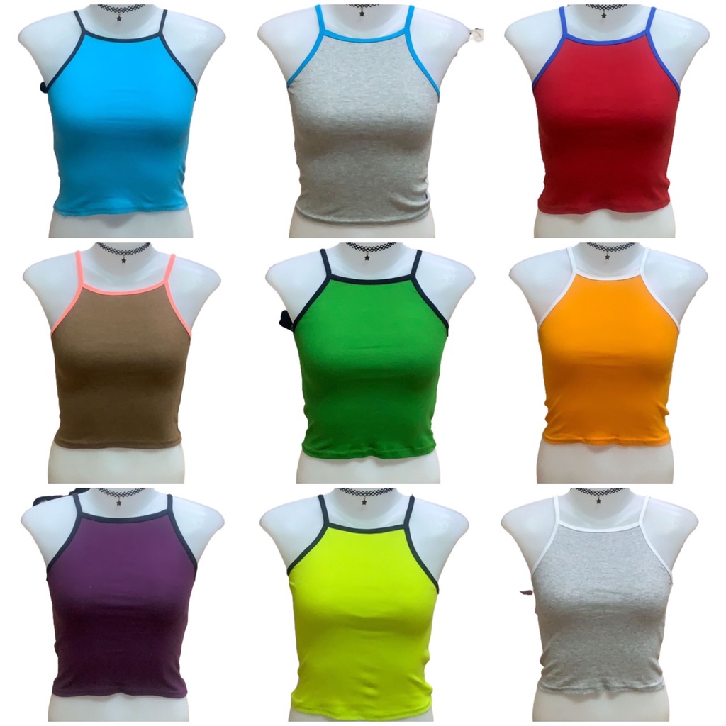 Lalata Vintage [คละสี] เกาะอกสายเดี่ยวสีพื้น สายเดี่ยว สายเดี่ยวแฟชั่น ผ้าคอตตอนผสม