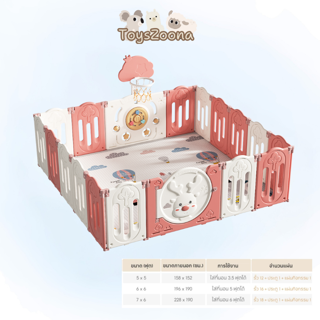 Toyszoona คอกกั้นเด็ก คอกกั้น ปรับขนาดได้ แข็งแรง พับเก็บได้ มีแป้นบาส ปลอดภัยสำหรับเด็ก