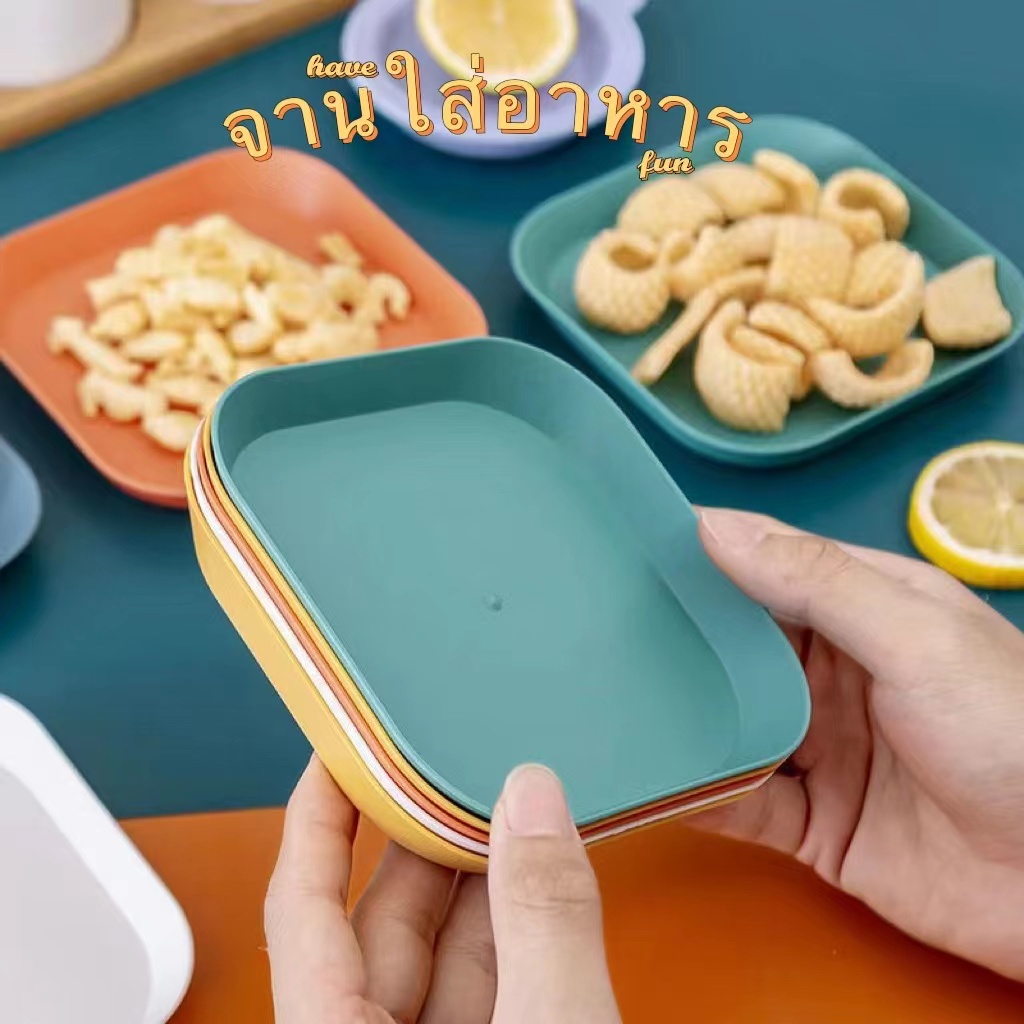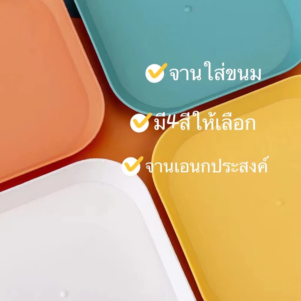 จานพลาสติก ใส่อาหาร / ขนม เอนกประสงค์ สีสันสดใส สไตล์มินิมอล แข็งแรง ทนทาน