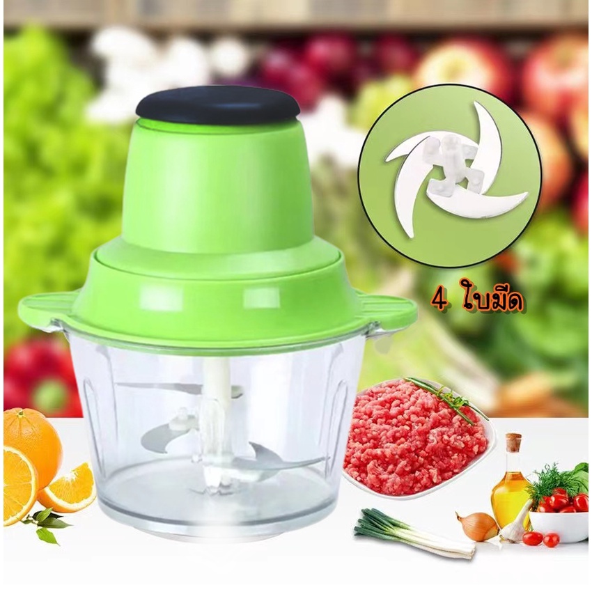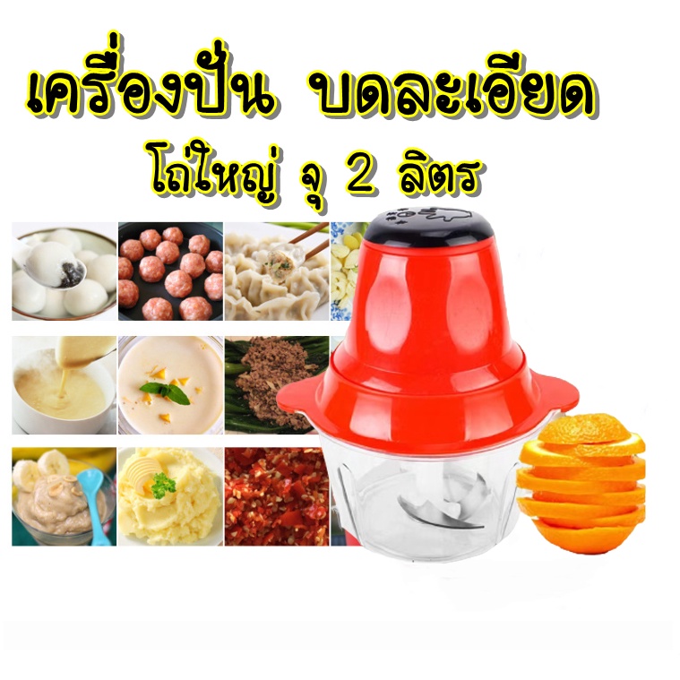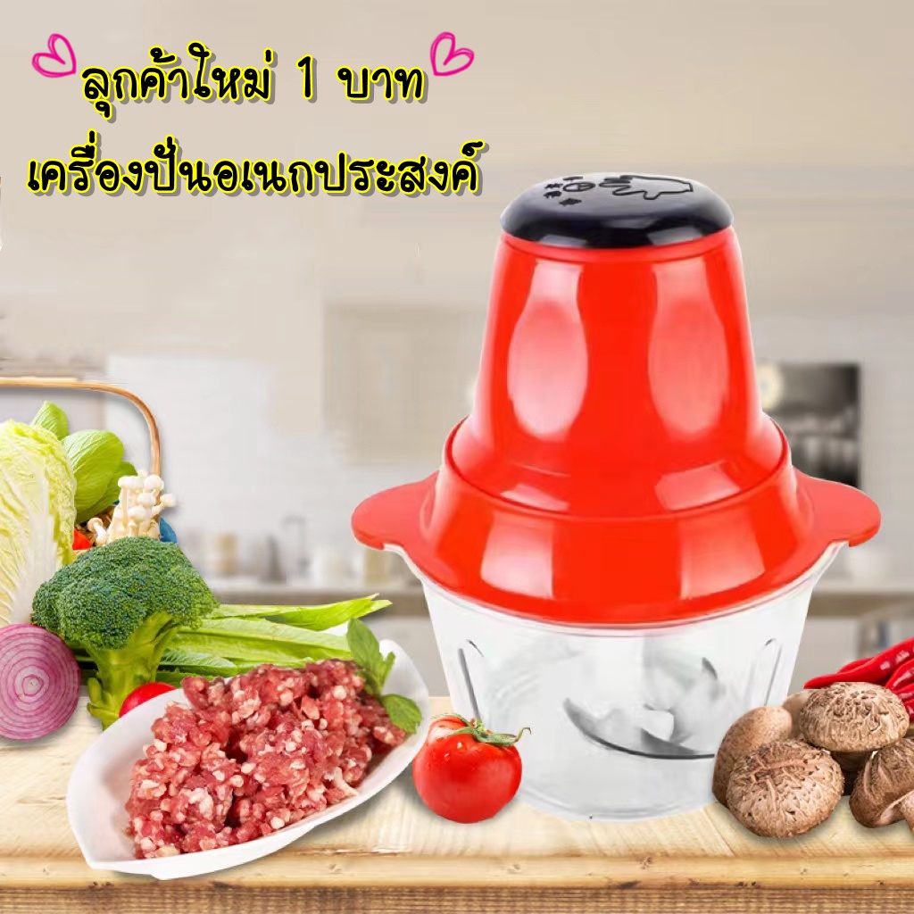 [ลูกค้าใหม่1บาท] เครื่องบดอาหาร อเนกประสงค์ เครื่องปั่น 4ใบมีด บดเนื้อ ปั่นหมู ผสมอาหาร 2ลิตร