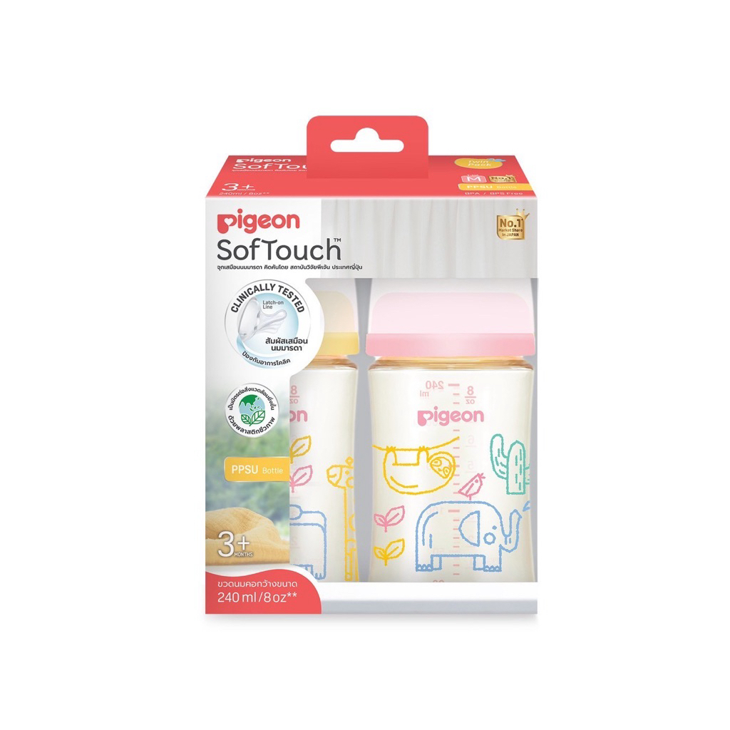 ขวดนม Pigeon พีเจ้นคอกว้าง สีชา ขาวขุ่น ของไทย100%