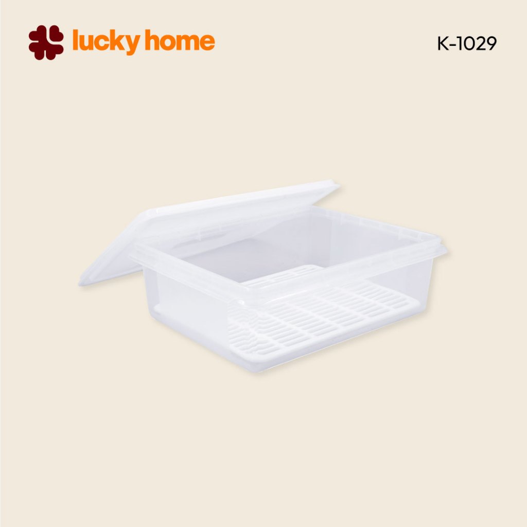 LUCKY HOME กล่องถนอมอาหารพลาสติกมีตะแกรงรอง K-1029 ขนาด (กว้างxยาวxสูง) 25 x 31 x 10 cm