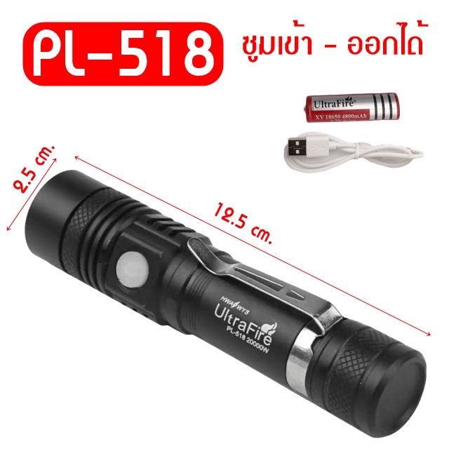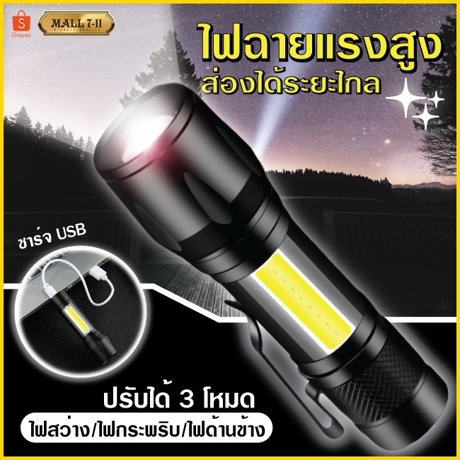 ไฟฉายแรงสูง ไฟฉายซูมได้ USB ไฟฉายแรงสูง ปรับโหมดได้ ไฟแฟลช์