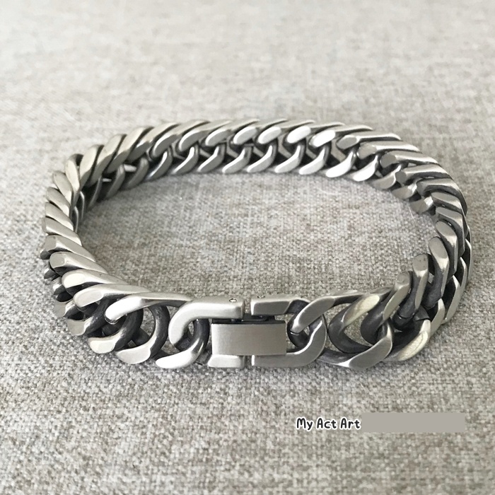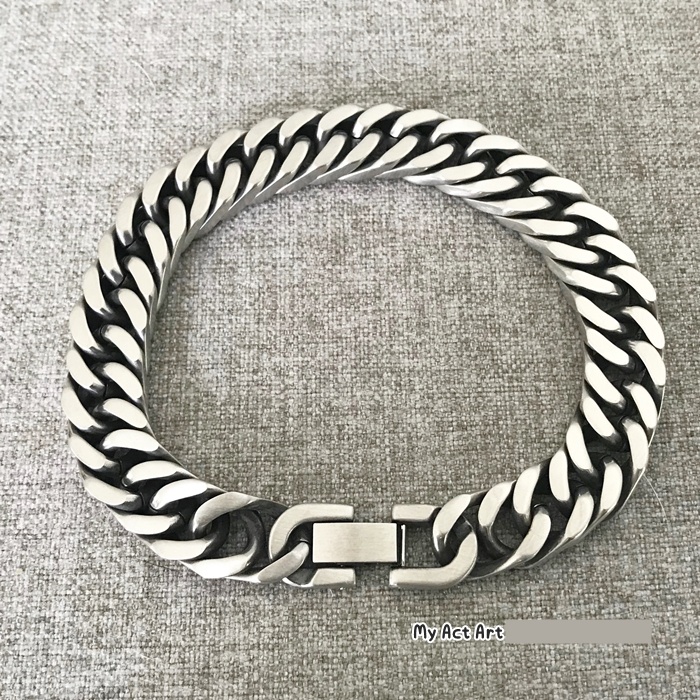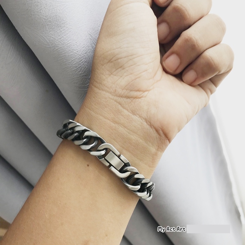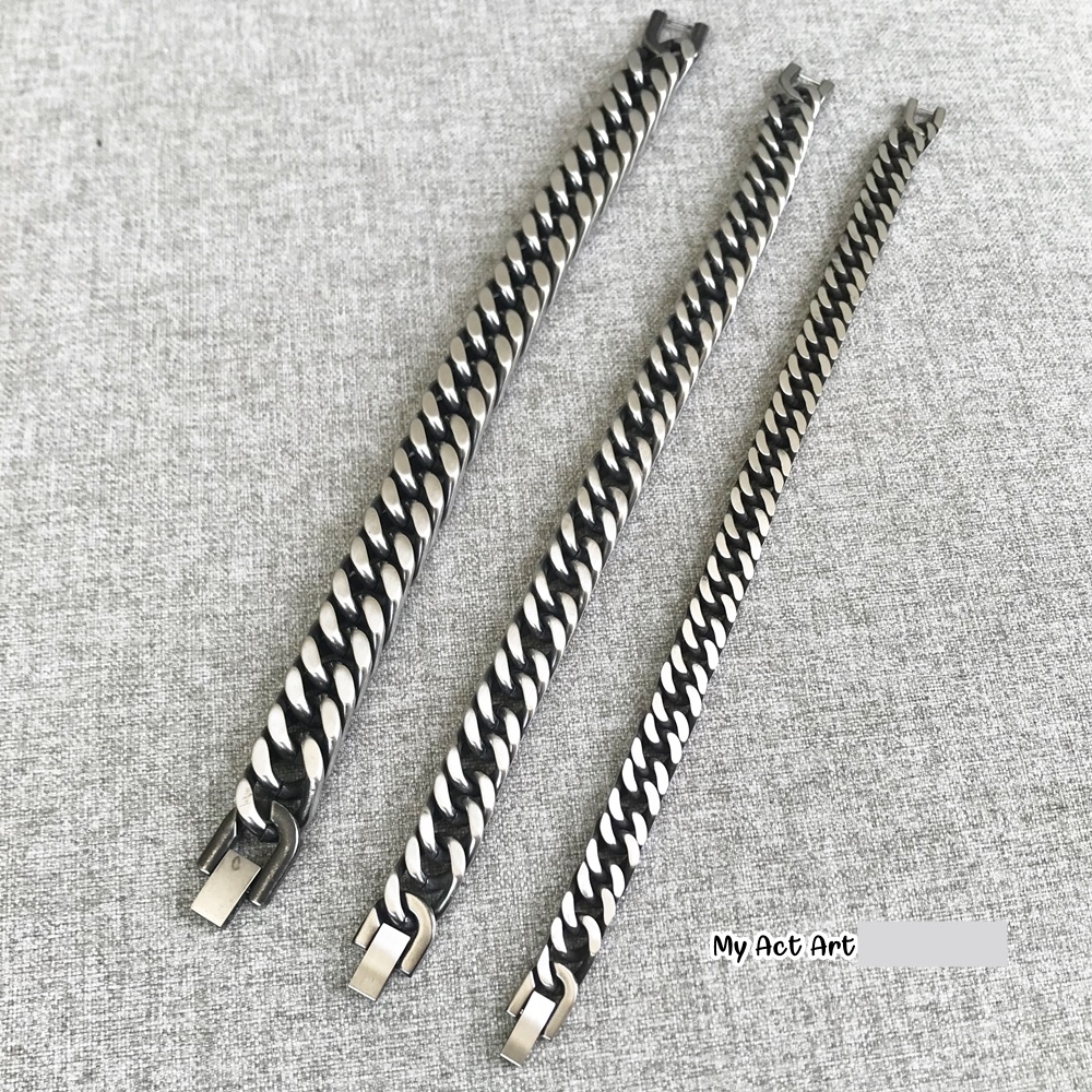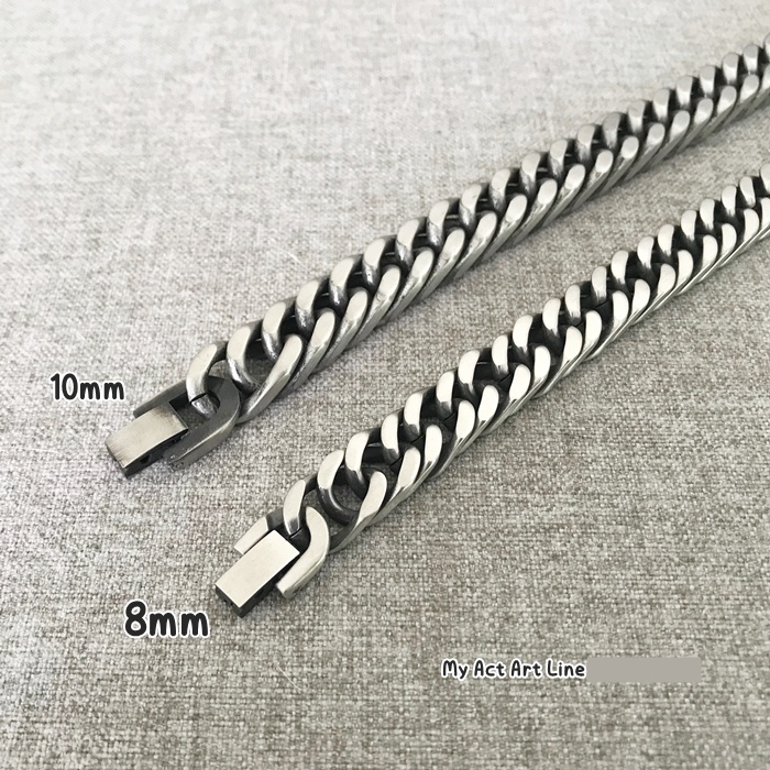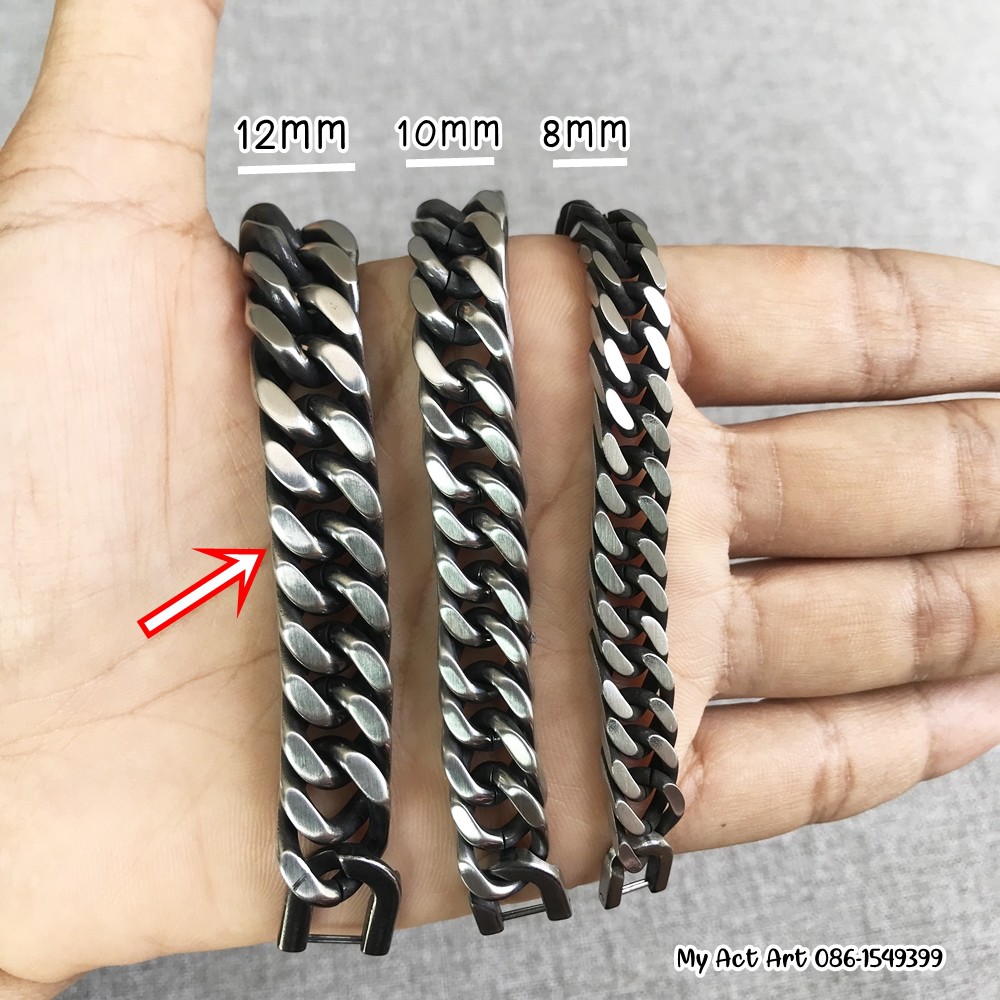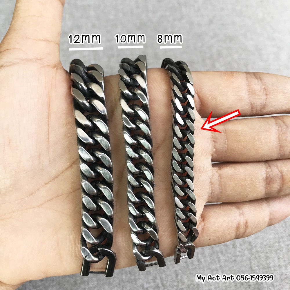 สร้อยข้อมือ สแตนเลส 8-10-12 mm เลสข้อมือ สีเงินปัดดำ โซ่ แสตนเลส แท้ราคาถูก ล็อคนาฬิกา