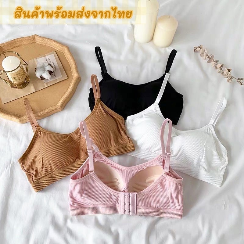 เสื้อในไร้โครง บราไร้โครง สปอร์ตบราไร้ขอบ ไร้โครง ผ้าร่องทรงสวย สปอร์ตบรา ตะขอหลัง เสริมฟองน้ำในตัว