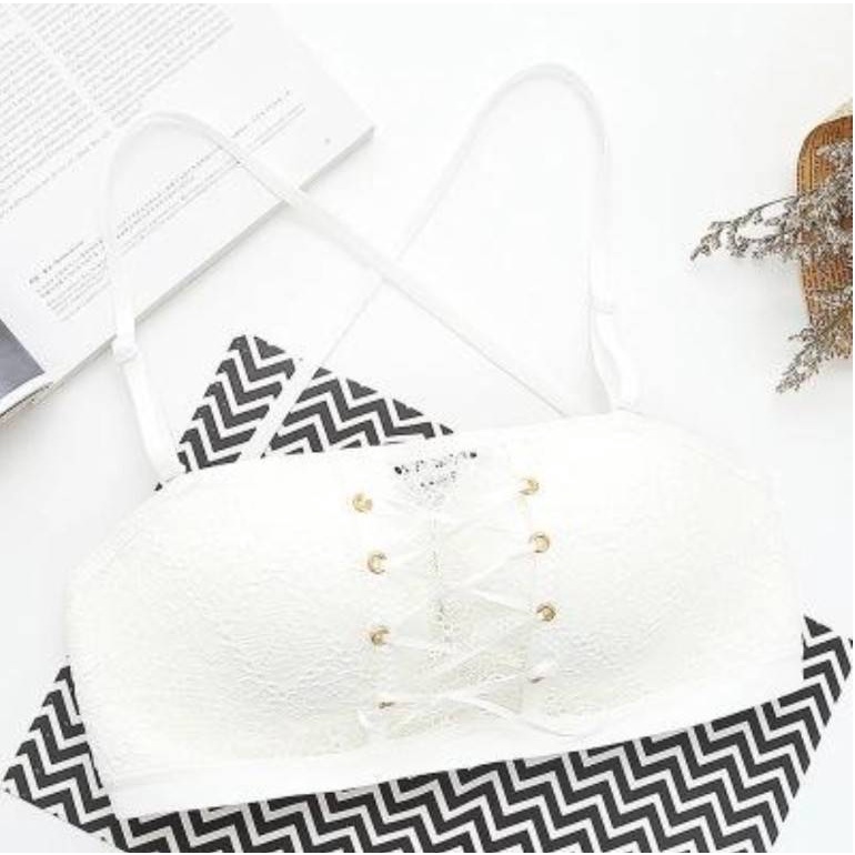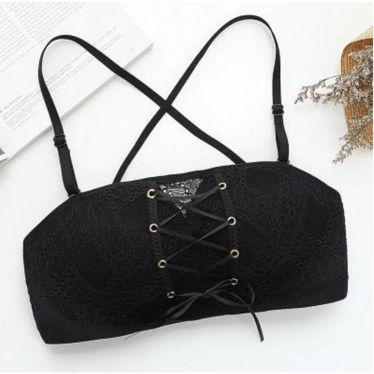 เสื้อชั้นใน เกาะอก บราไร้โครง ดันทรง B053 ตะขอหลัง เเบบเชือกรูด เสื้อในลูกไม้ ทรงสวย กระชับ