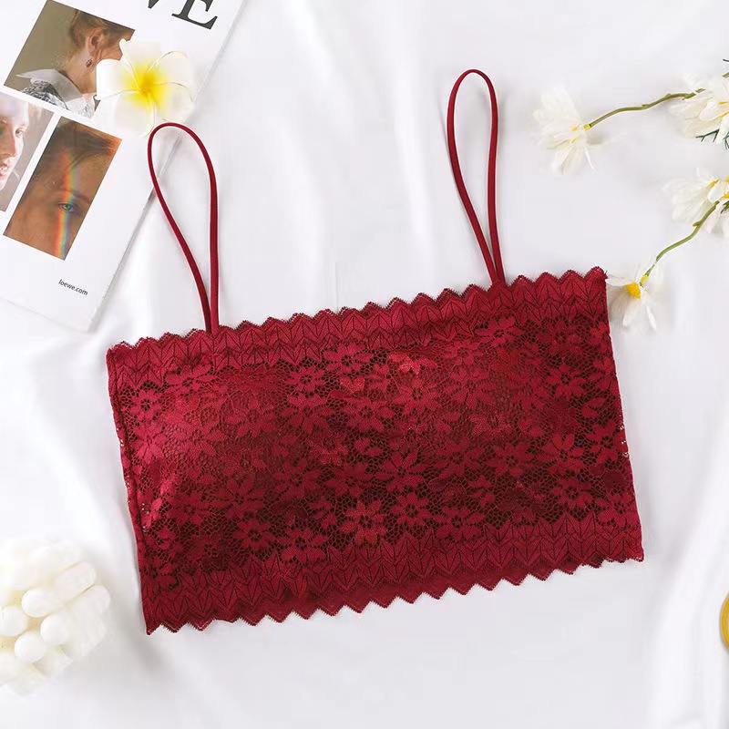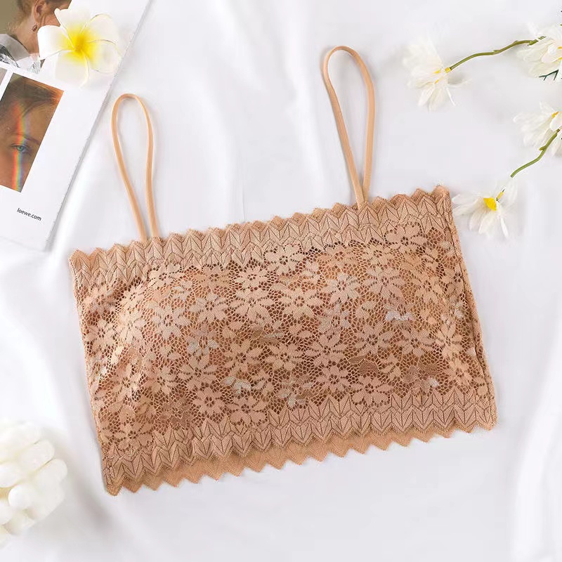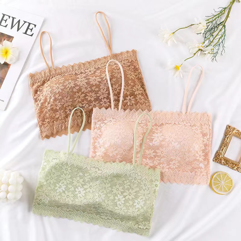 BraMin ชุดชั้นใน บราลูกไม้ B-063 เเบบสวม สายเดี่ยว สายยางยืด บราลูกไม้ งานลูกไม้ ฟองน้ำในตัว ผ้าบาง