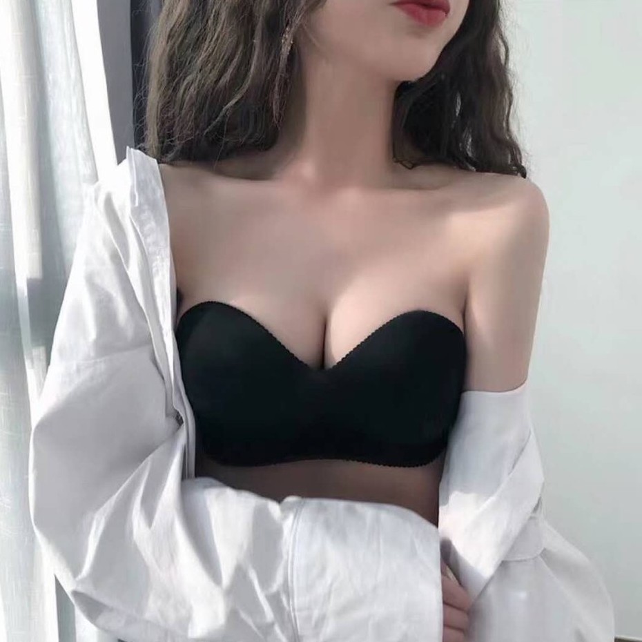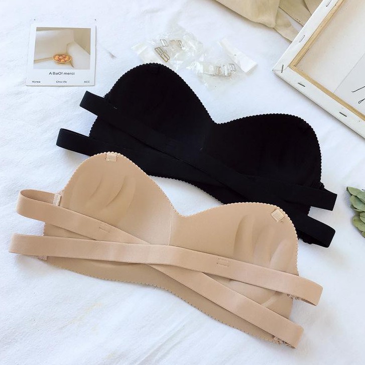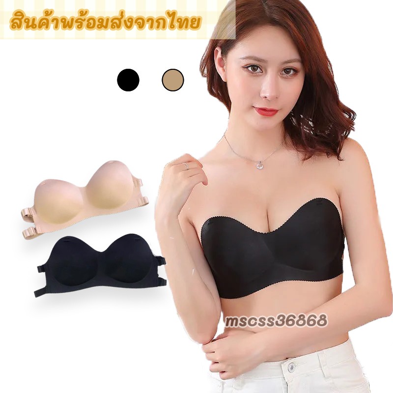 เสื้อชั้นใน เกาะอก บราเกาะ อกสายปรับได้ พร้อมสายใส ผ้าฟองน้ำ สายไขว้หลัง ตะขอข้าง