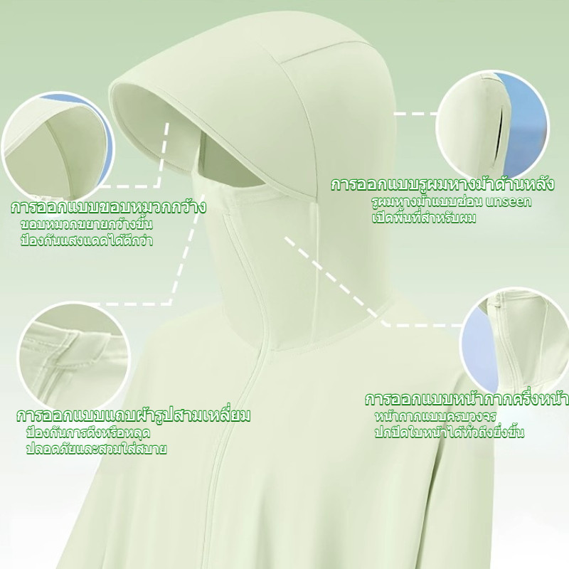 GENIO LAMODE เสื้อคลุม [รุ่นIcing] เสื้อคลุมกันแดด เสื้อเย็น มีหมวกกันแดด ซิปปิดหน้า เสื้อฮู้ดกันแสงแดด กันUV UPF200+ S-2XL