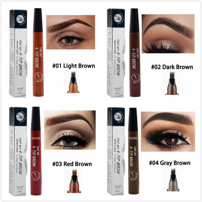 ดินสอเขียนคิ้ว เนื้อลิขวิด หัวแปรง 4 แฉก กันน้ำ ติดทนนาน