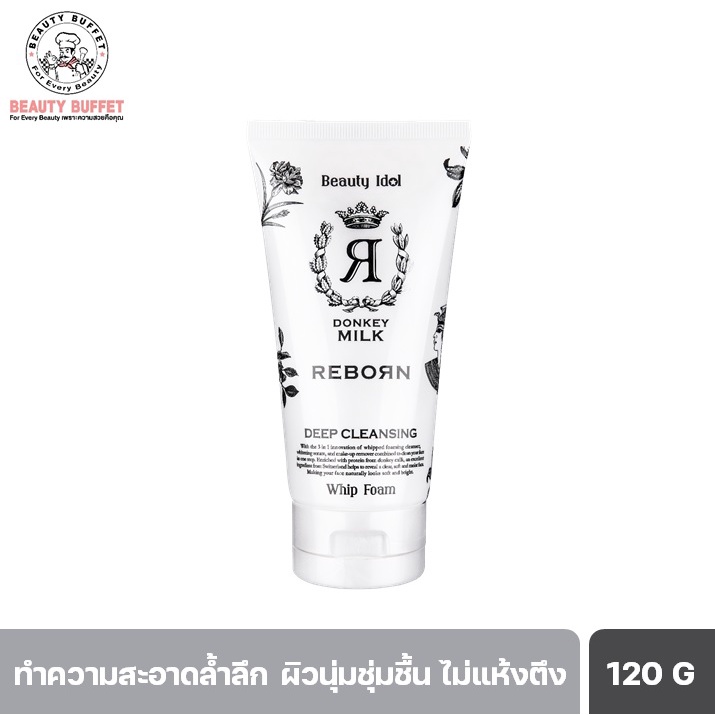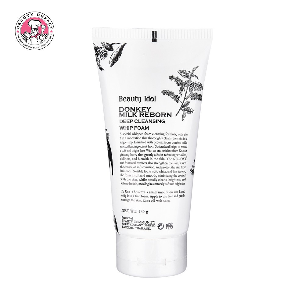 BEAUTY BUFFET Beauty Idol Donkey Milk Reborn Deep Cleansing Whip Foam บิวตี้บุฟเฟ่ต์ โฟมล้างหน้าล้างเครื่องสำอาง (120g)