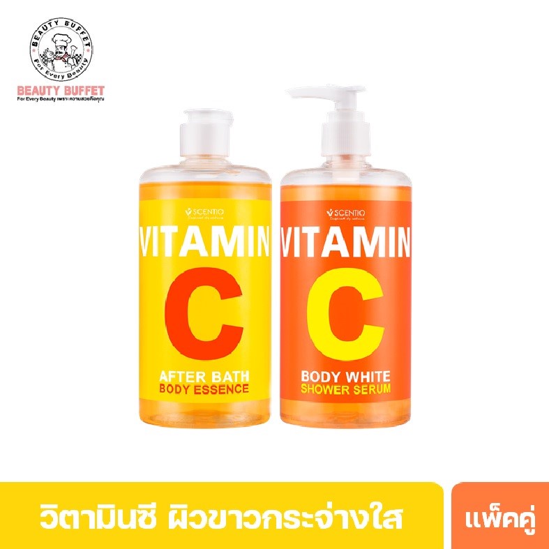 [ซื้อคู่ราคาพิเศษ] SCENTIO VITAMIN C BODY WHITE SHOWER SERUM+AFTER BATH BODY ESSENCE -วิตามินซีน้ำตบ+ครีมอาบน้ำ (450ML.)