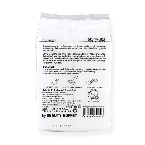 BEAUTY BUFFET GINO McCRAY THE ARTIST COTTON SHEET - จีโน่ แม็คเครย์ ดิ อาร์ทติสท์ สำลีแผ่น (100 แผ่น/ห่อ)