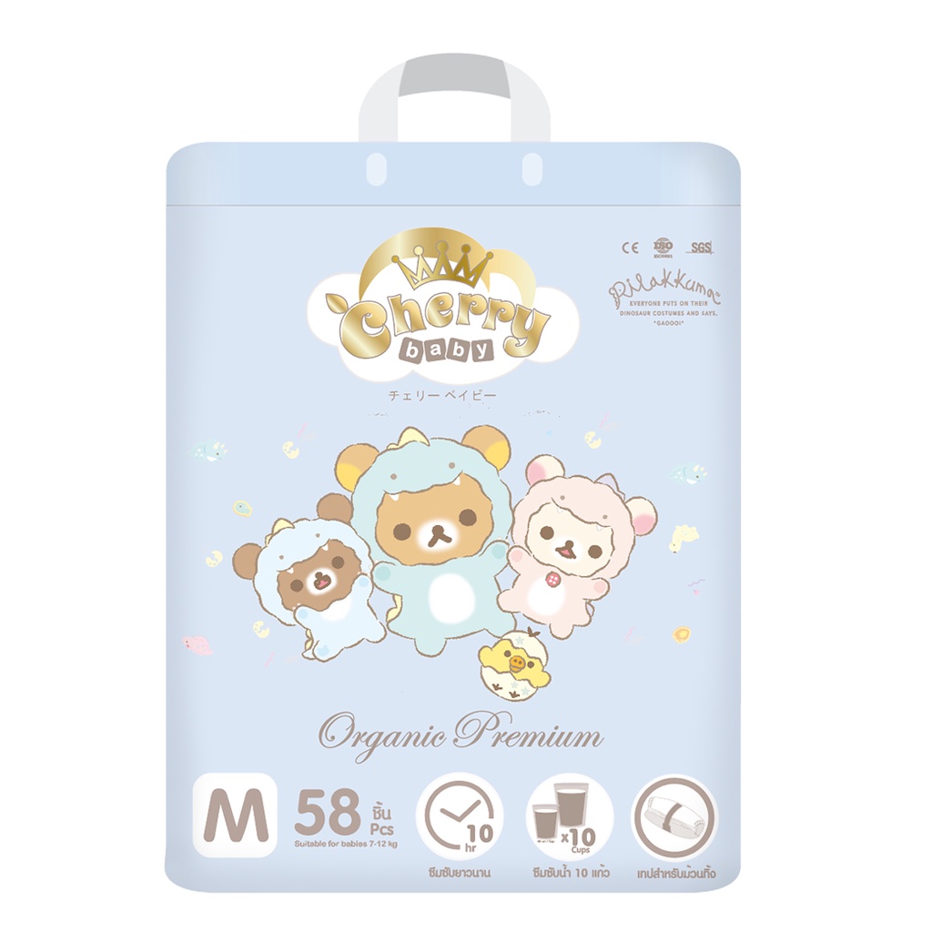 Cherry Baby รุ่น Organic ลิลัคคุมะ แบบ 1 ห่อ Premium Size NB , M , L , XL , XXL