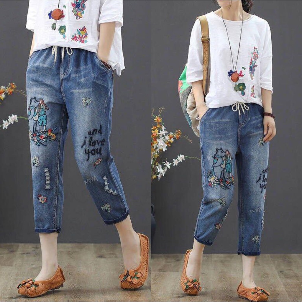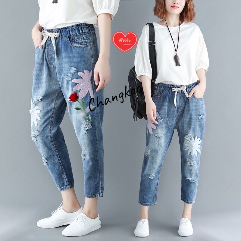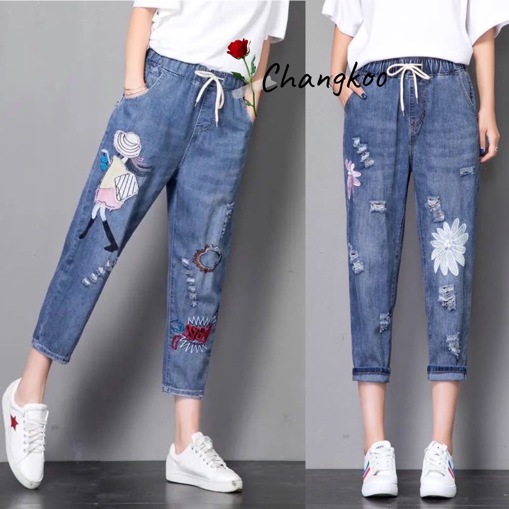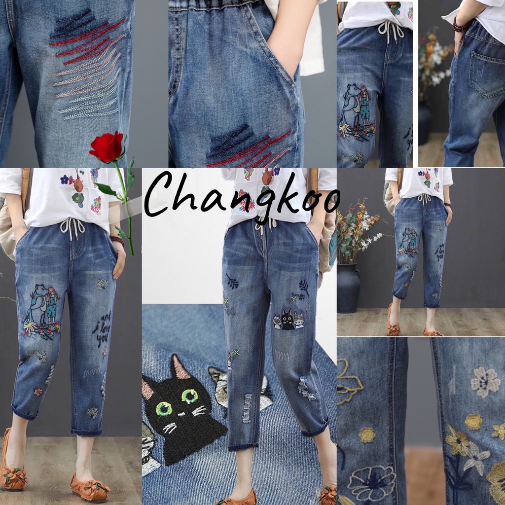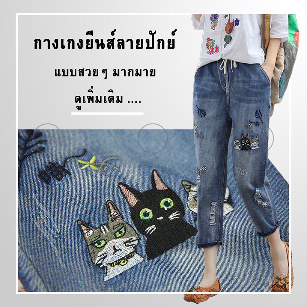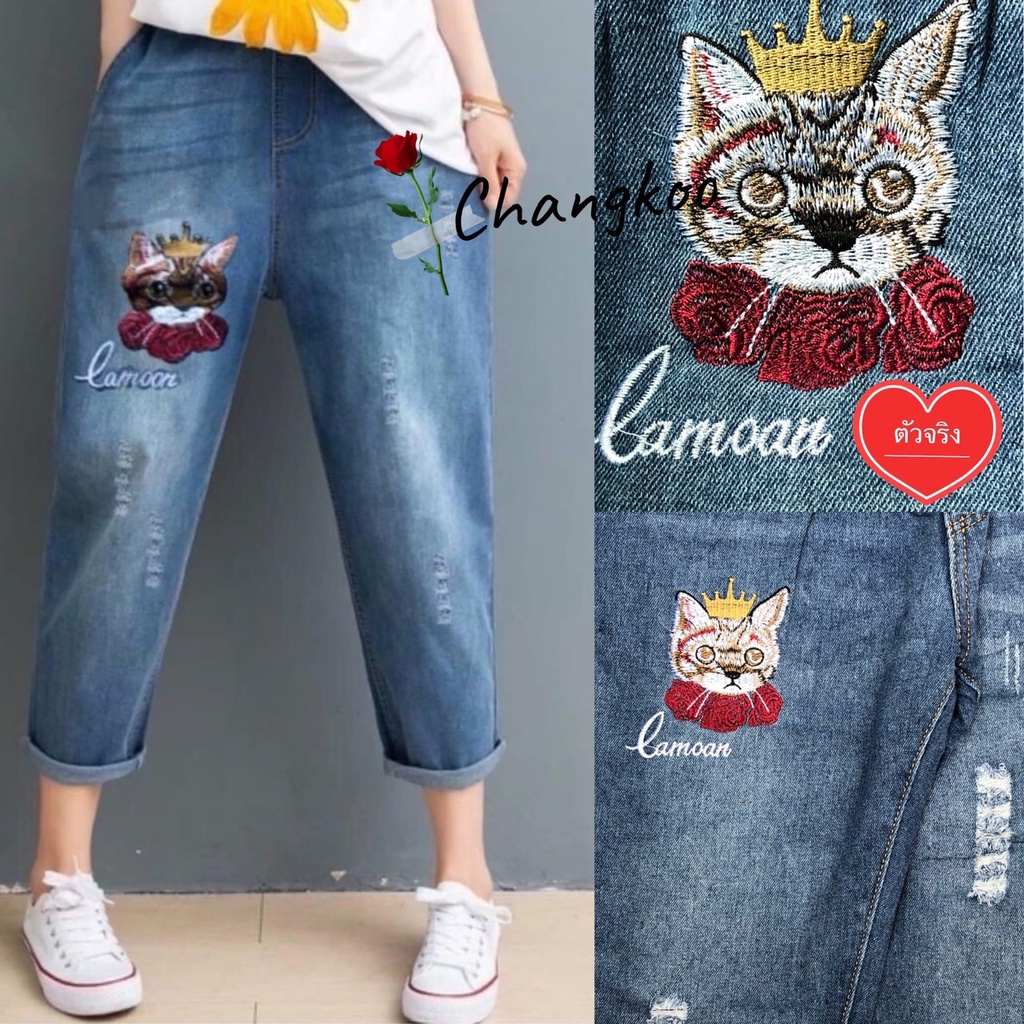 กางเกงยีนส์ กางเกงยีนส์ขายาว ผู้หญิง เอวสูง ผ้านิ่ม สไตล์เกาหลี งานปัก ใส่สบาย สีไม่ตก ราคาสุดคุ้ม