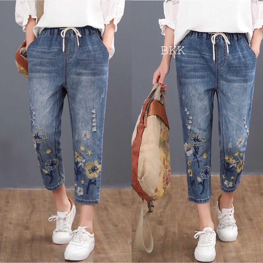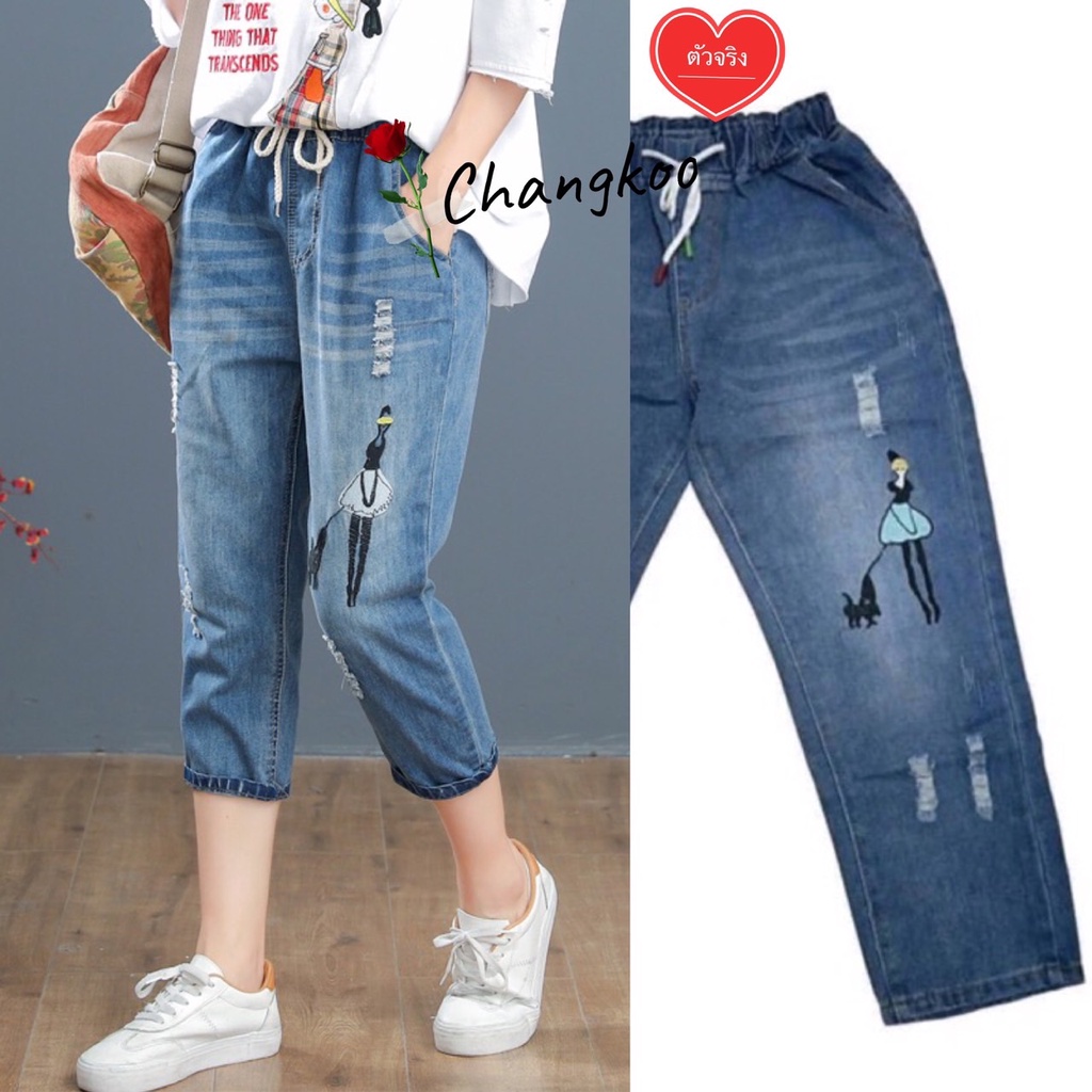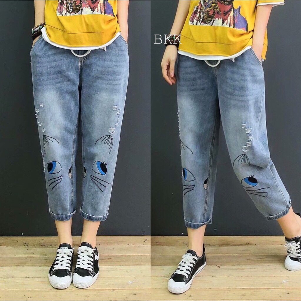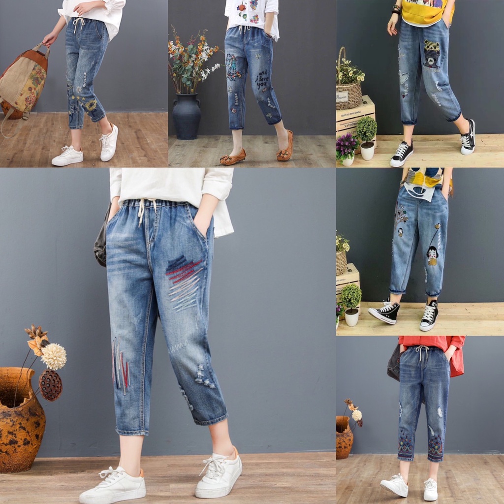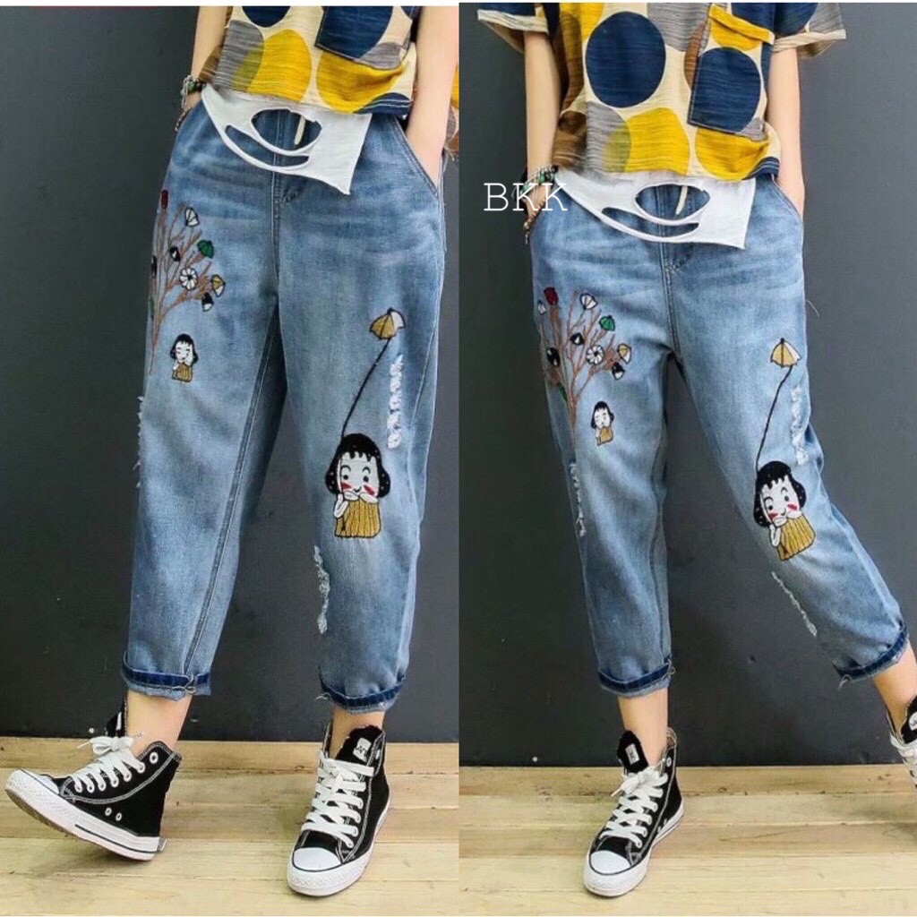 กางเกงยีนส์ กางเกงยีนส์ขายาว ผู้หญิง เอวสูง ผ้านิ่ม สไตล์เกาหลี งานปัก ใส่สบาย สีไม่ตก ราคาสุดคุ้ม