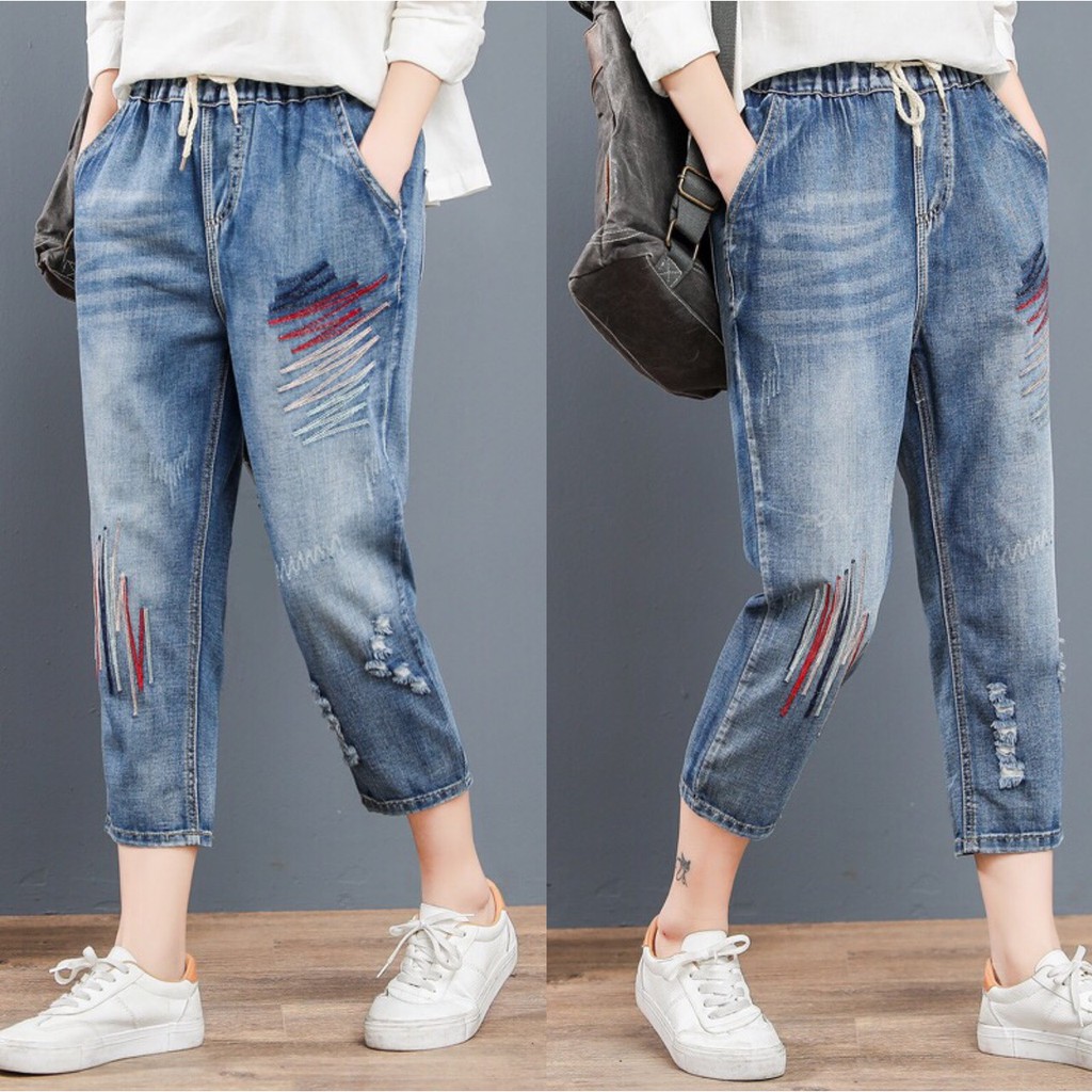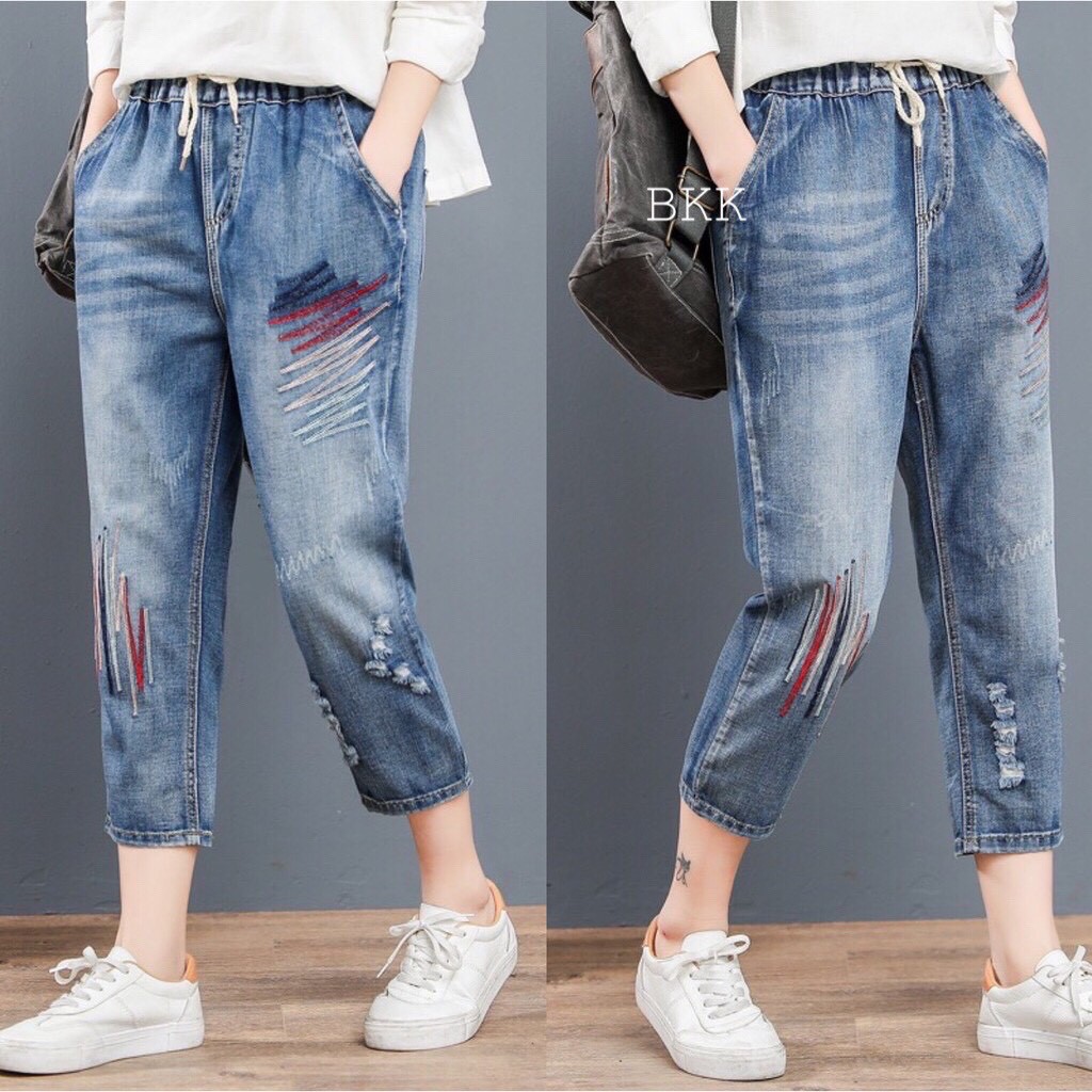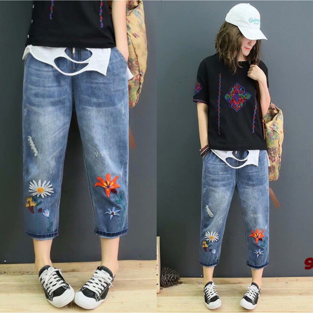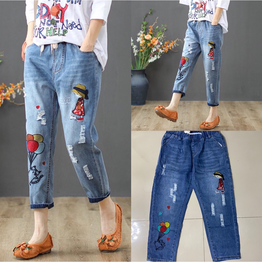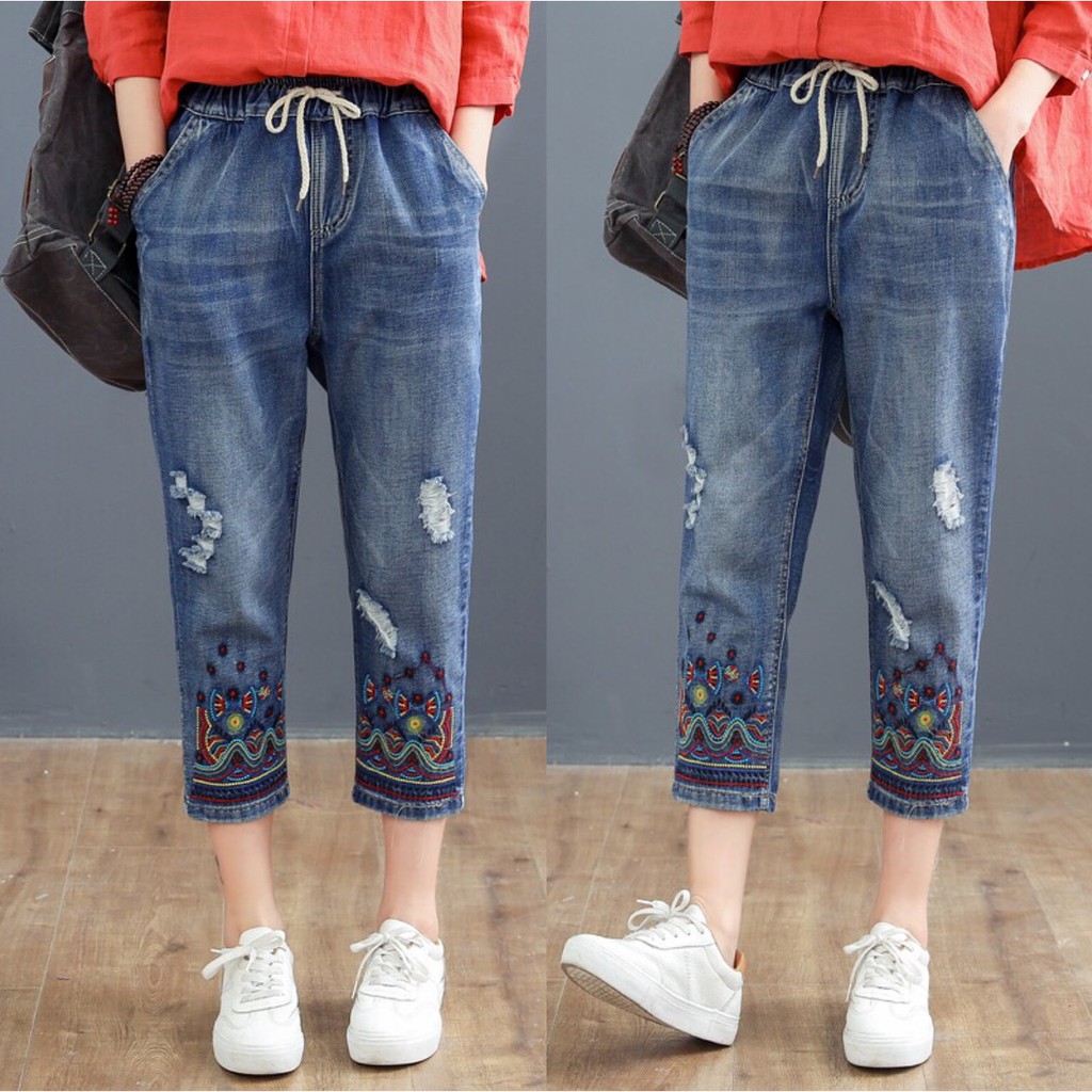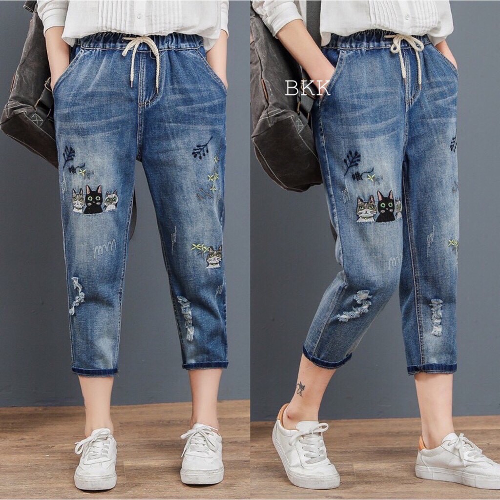 กางเกงยีนส์ กางเกงยีนส์ขายาว ผู้หญิง เอวสูง ผ้านิ่ม สไตล์เกาหลี งานปัก ใส่สบาย สีไม่ตก ราคาสุดคุ้ม