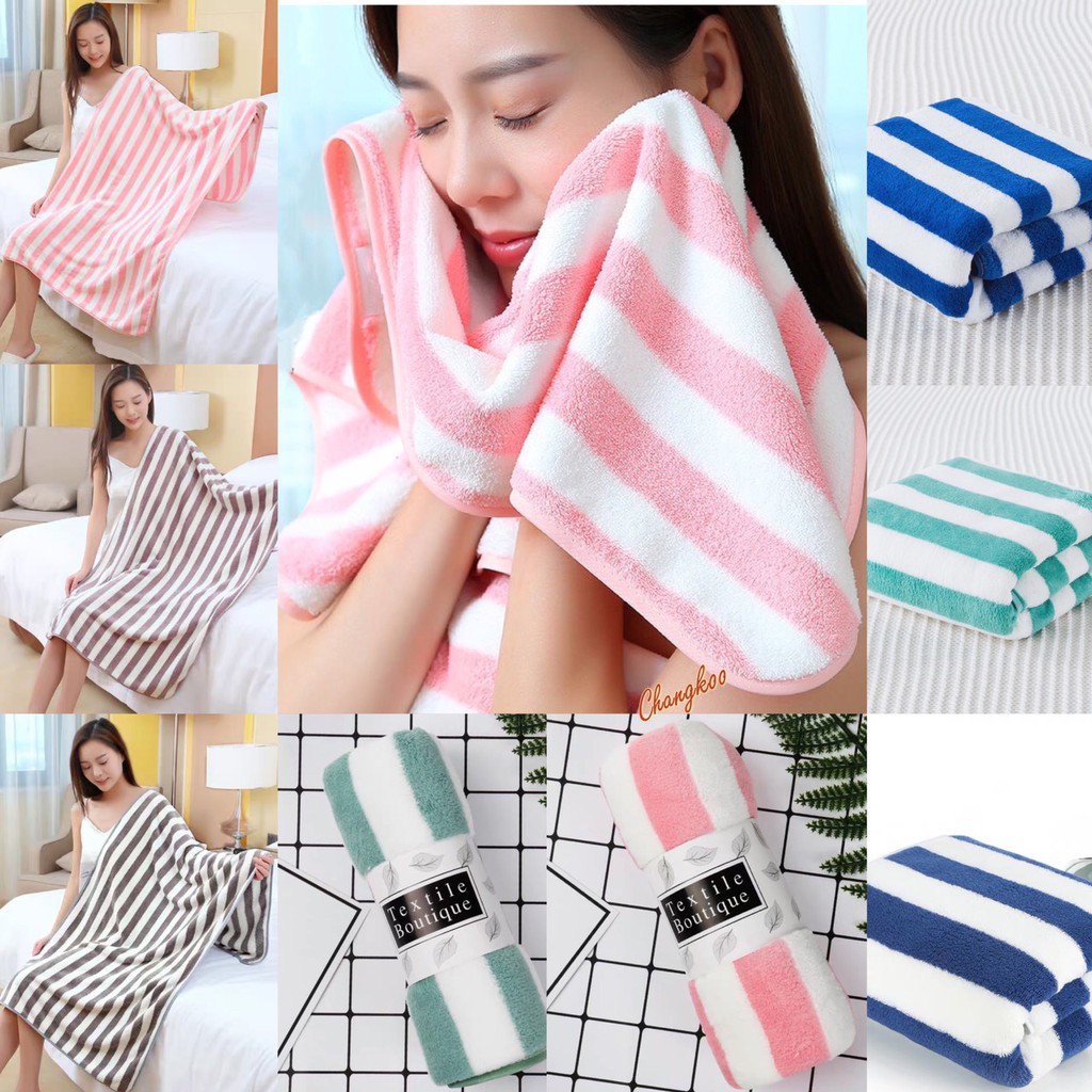 ผ้าเช็ดตัว-ขนหนู ผ้าเช็ดตัวขนเป็ด ลายริ้ว ผืนใหญ่ 170x90ซับนํ้าดี มีให้เลือกหลายสี ของใหม่ พร้องส่ง