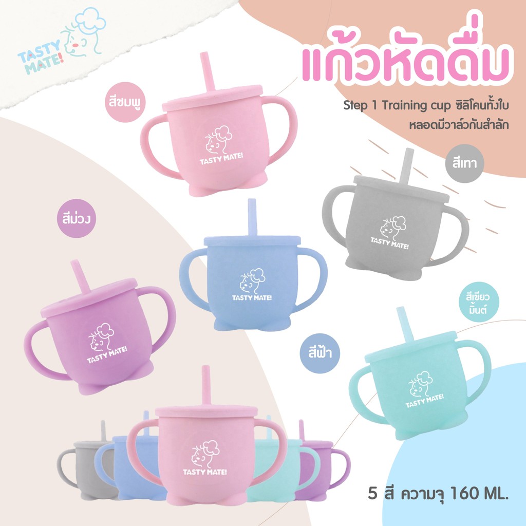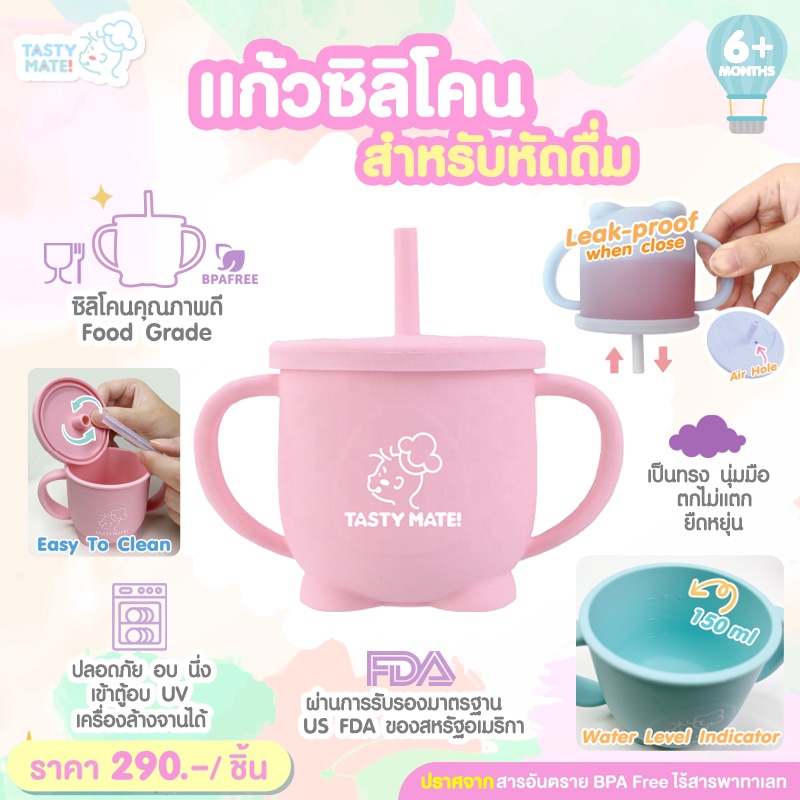💧 Tasty Mate 🥛 แก้วซิลิโคนหัดดื่ม สำหรับเด็ก 6 เดือน+ 👶🏻