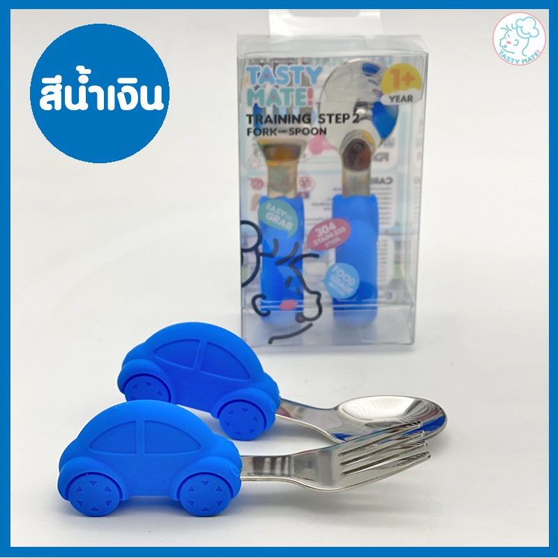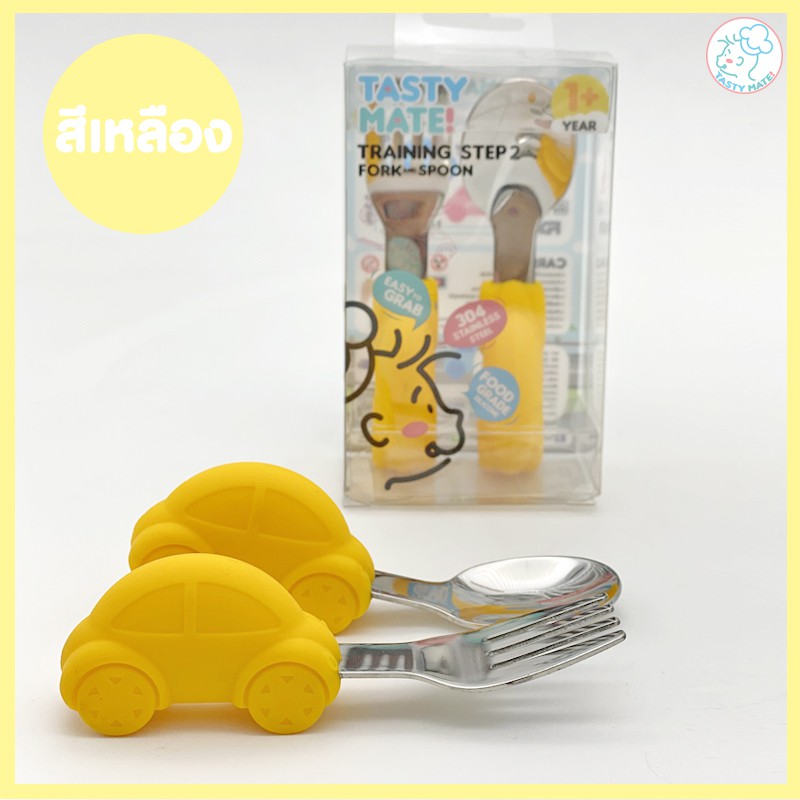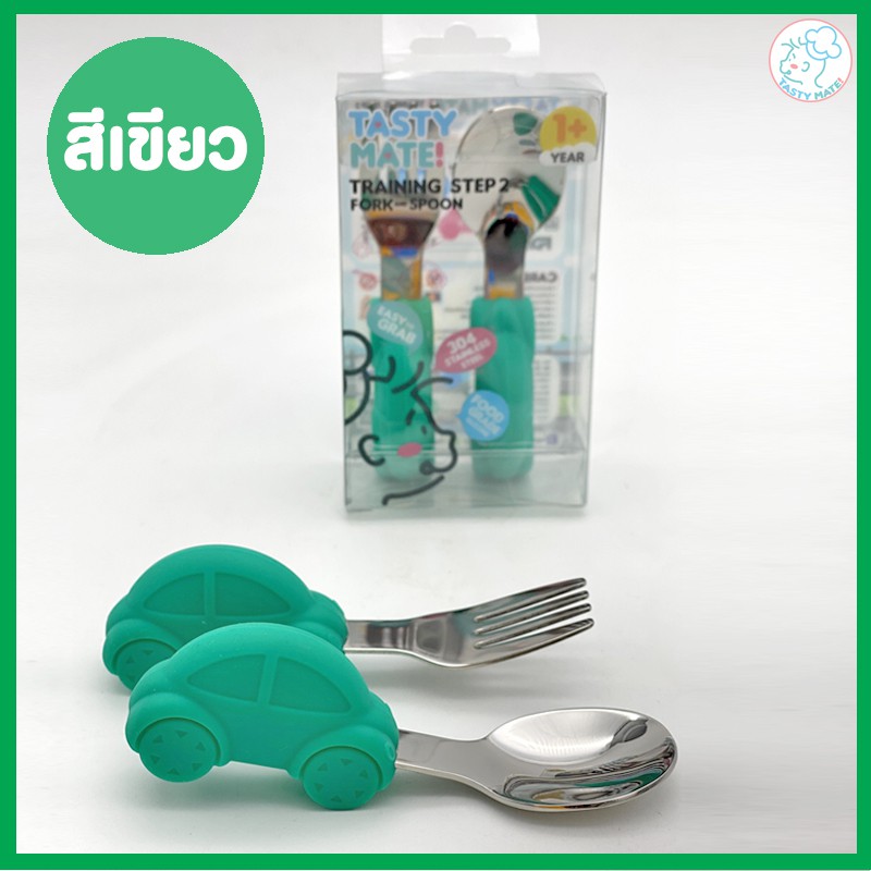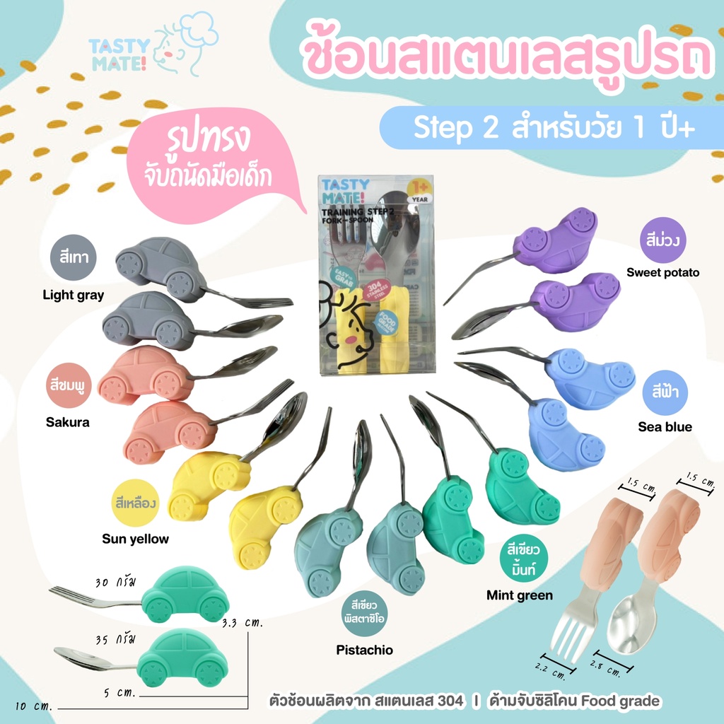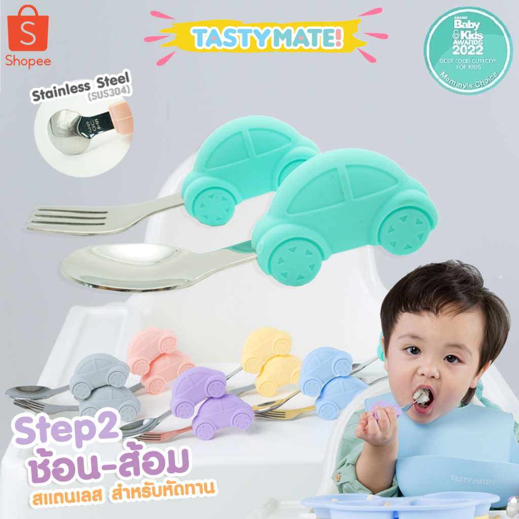 Tasty Mate ✨ ช้อน-ส้อม สแตนเลสแบบสั้น 🥄 สำหรับหัดตักอาหารทาน Step2 👶🏻