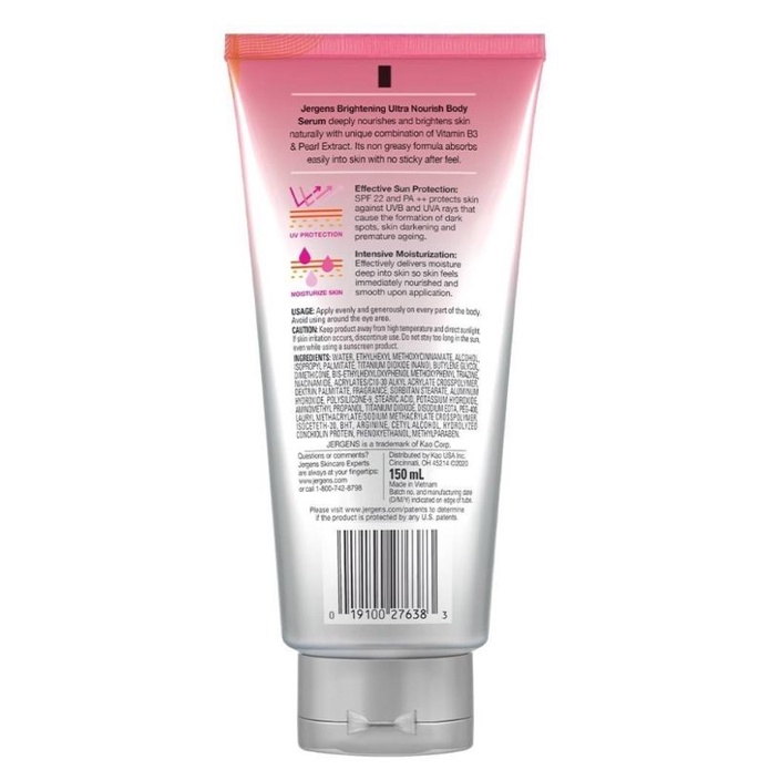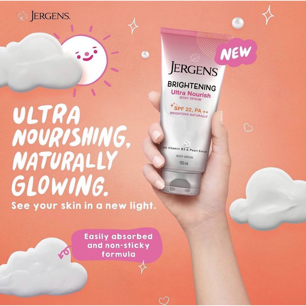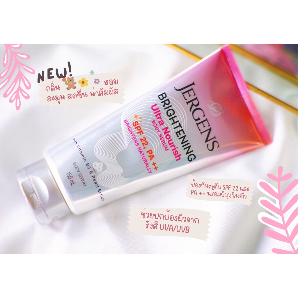 Jergens กันแดด Brightening Ultra Nourish Body Serum เจอเก้น เซรั่มผิวกายกันแดด ช่วยผิวขาวเนียน SPF 22 PA++ ขนาด 150 มล.