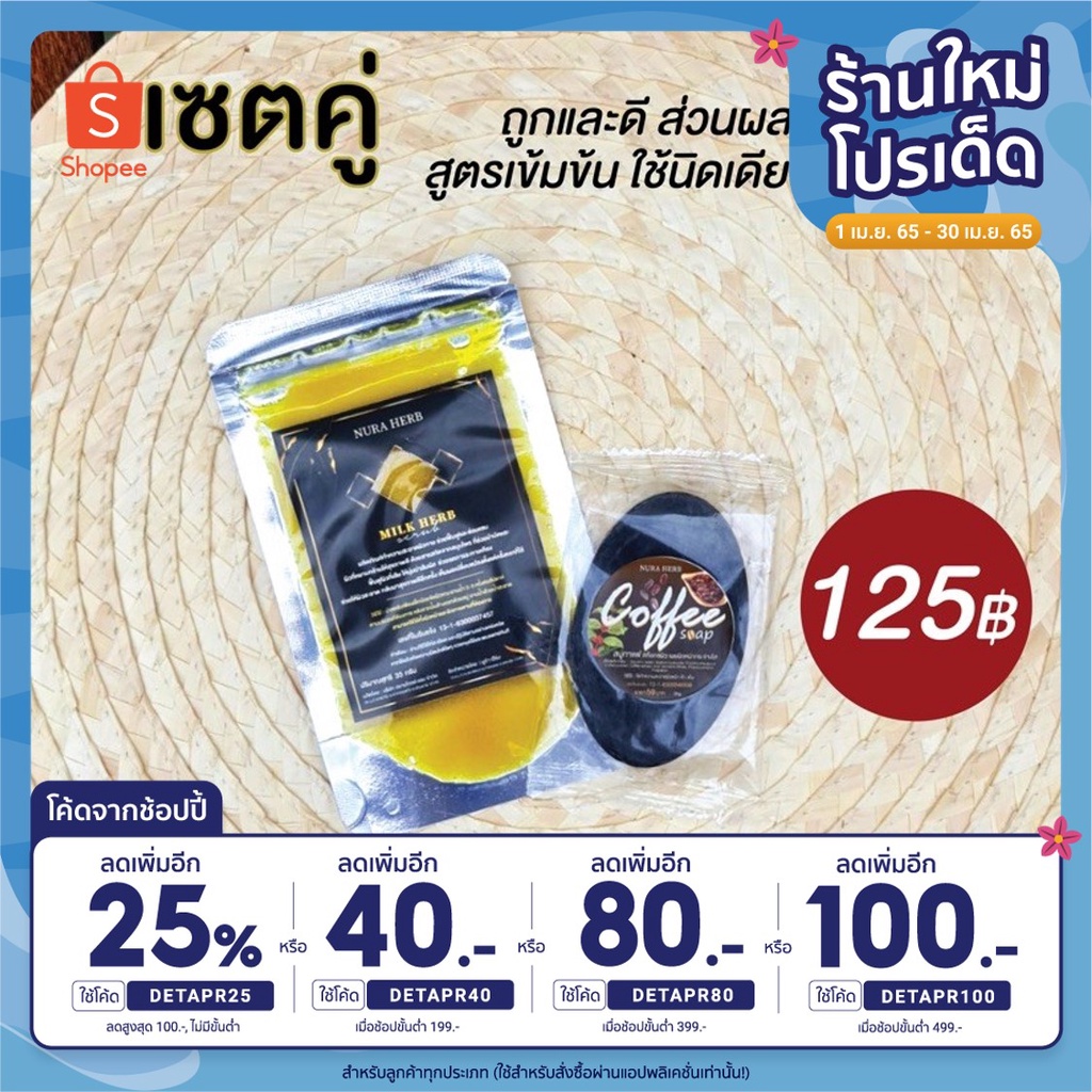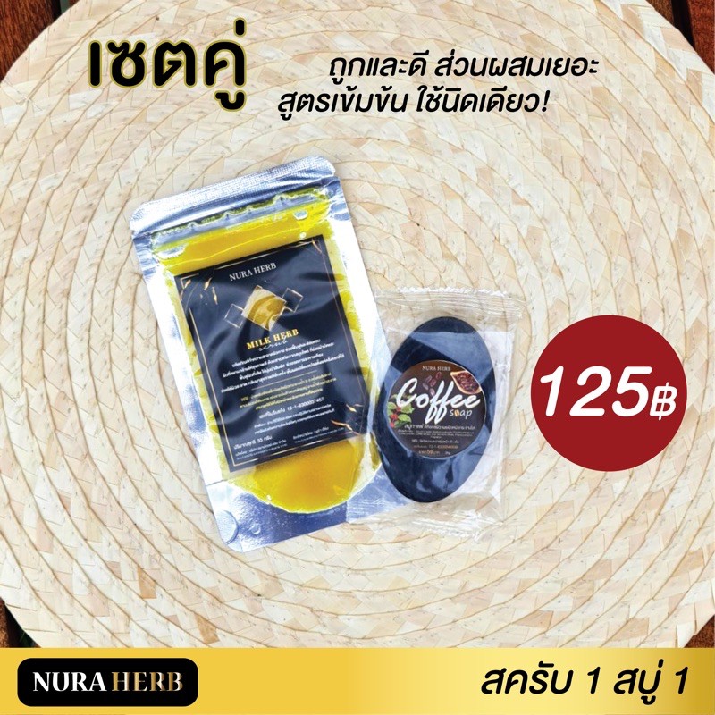 [ใส่โค้ด DETAPR25 ลดเพิ่ม 25%] เซ็ตคู่ [สครับ1 สบู่1] สครับขัดผิวนูร่า เฮิร์บ Nura Herb