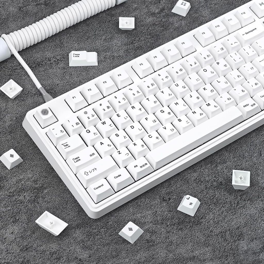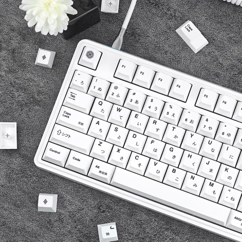 Minimalist White Keycaps 135 Keys Cherry Profile PBT Material Japanese Thai Keycap for RK61 64/71/84/87/980/104 Layout Mechanical Keyboard