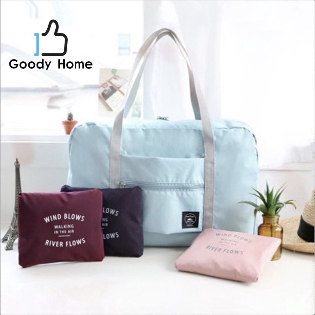 Goody Home กระเป๋าผ้าบรรจุของใช้ต่าง ๆพับเก็บได้ และสามารถหิ้วได้หรือนำไปเสียบบนแกนกระเป๋าเดินทางเพื่อลาก ผ่อนแรงได้